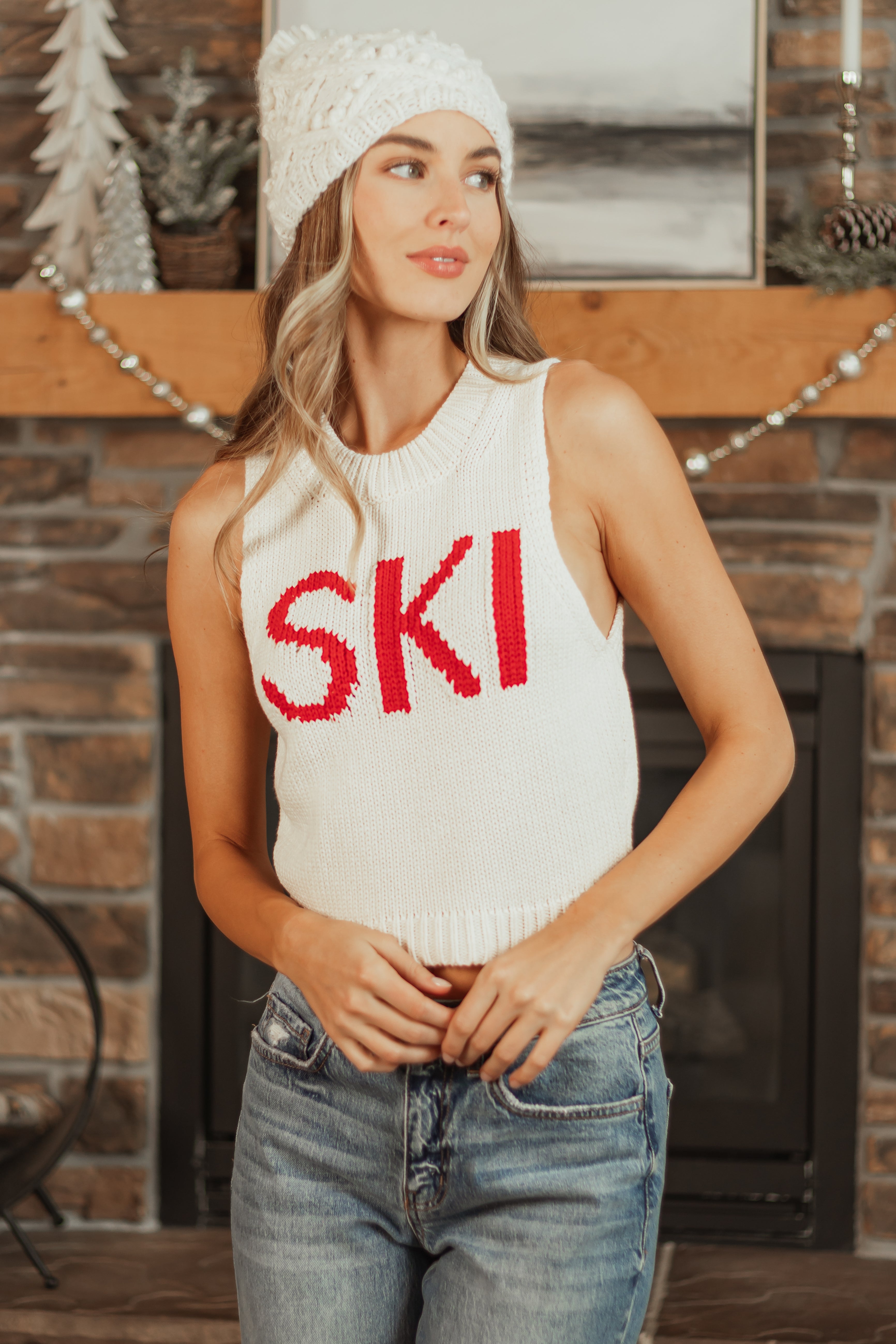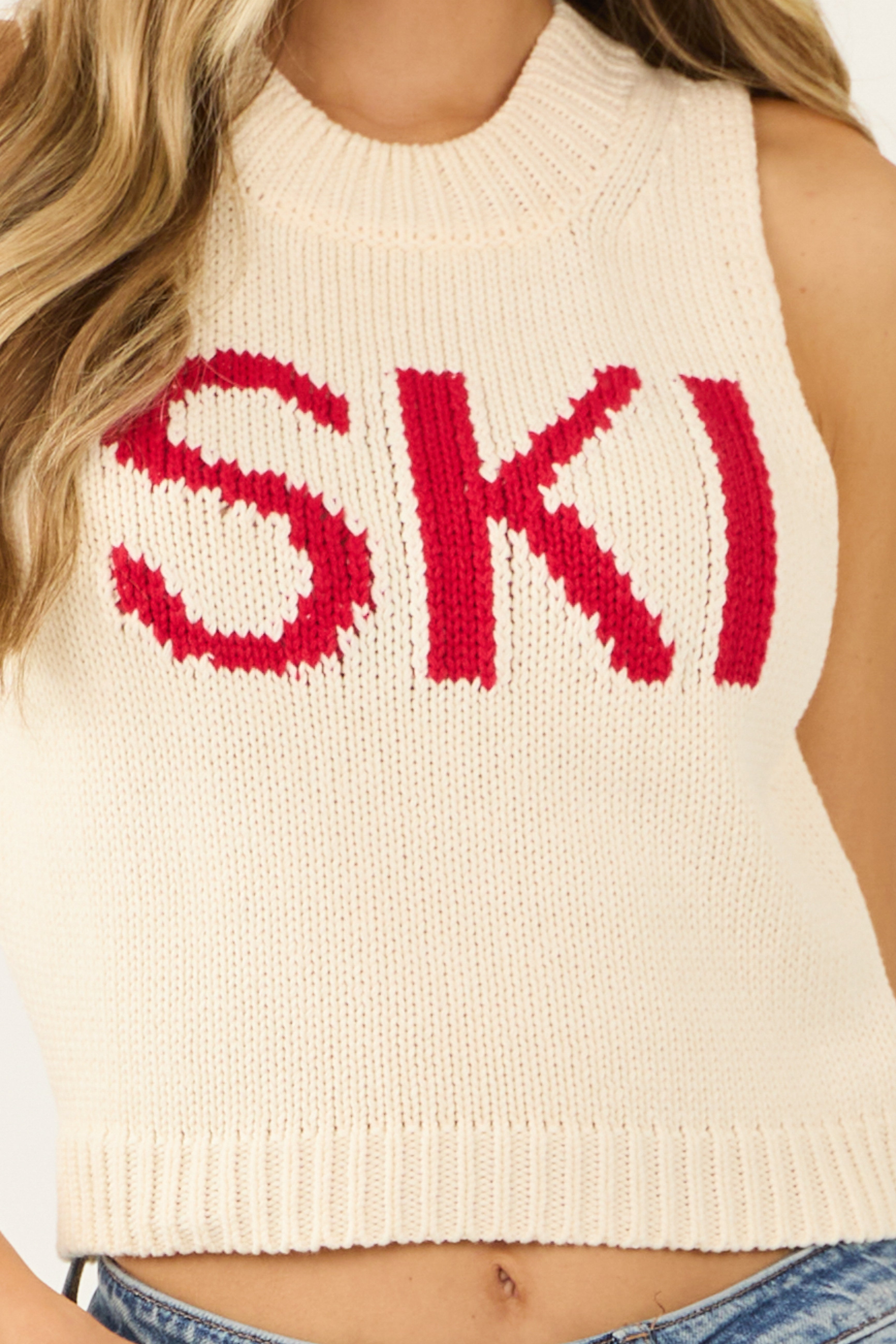Stay cozy and stylish with our Cream Knit Sleeveless Sweater Top! This versatile knit top features strap details, a trendy crew neckline, and ribbed trim for a chic look. Made of 100% polyester, it offers a stretchy and comfortable fit. The mid-length design with unlined finish is perfect for any casual outing. Hand wash cold, lay flat to dry, and iron as needed for care. Available in sizes XS, S, M, and L. Model is wearing size Small.