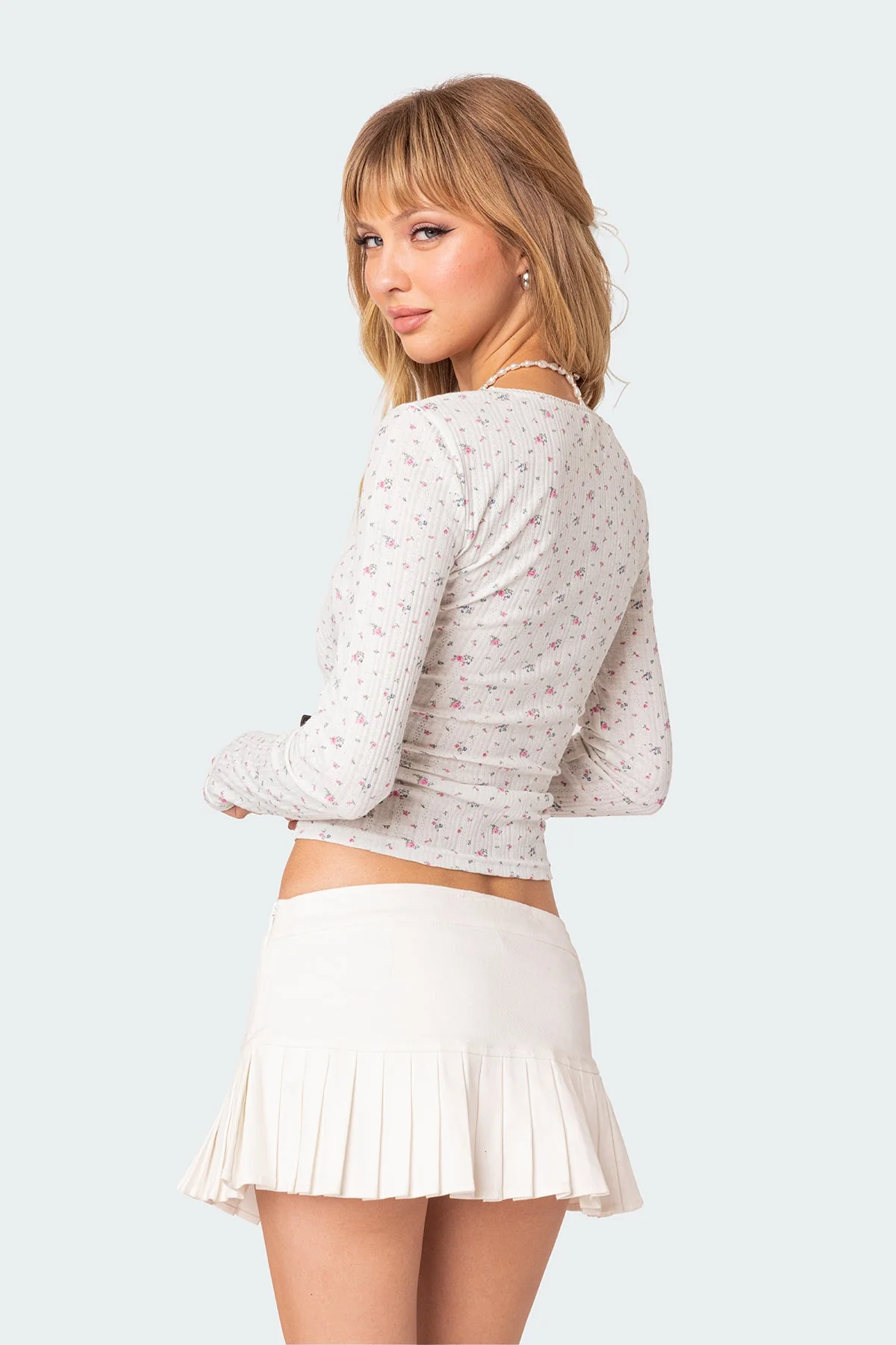 Elevate your wardrobe with this cream Pointelle top featuring long sleeves, a scoop neck, and a charming center bow detail. Made of polyester and cotton blend, this top offers both style and comfort. Suitable for machine wash at maximum 30ºC, this versatile top pairs perfectly with any bottom wear and is great for various occasions.