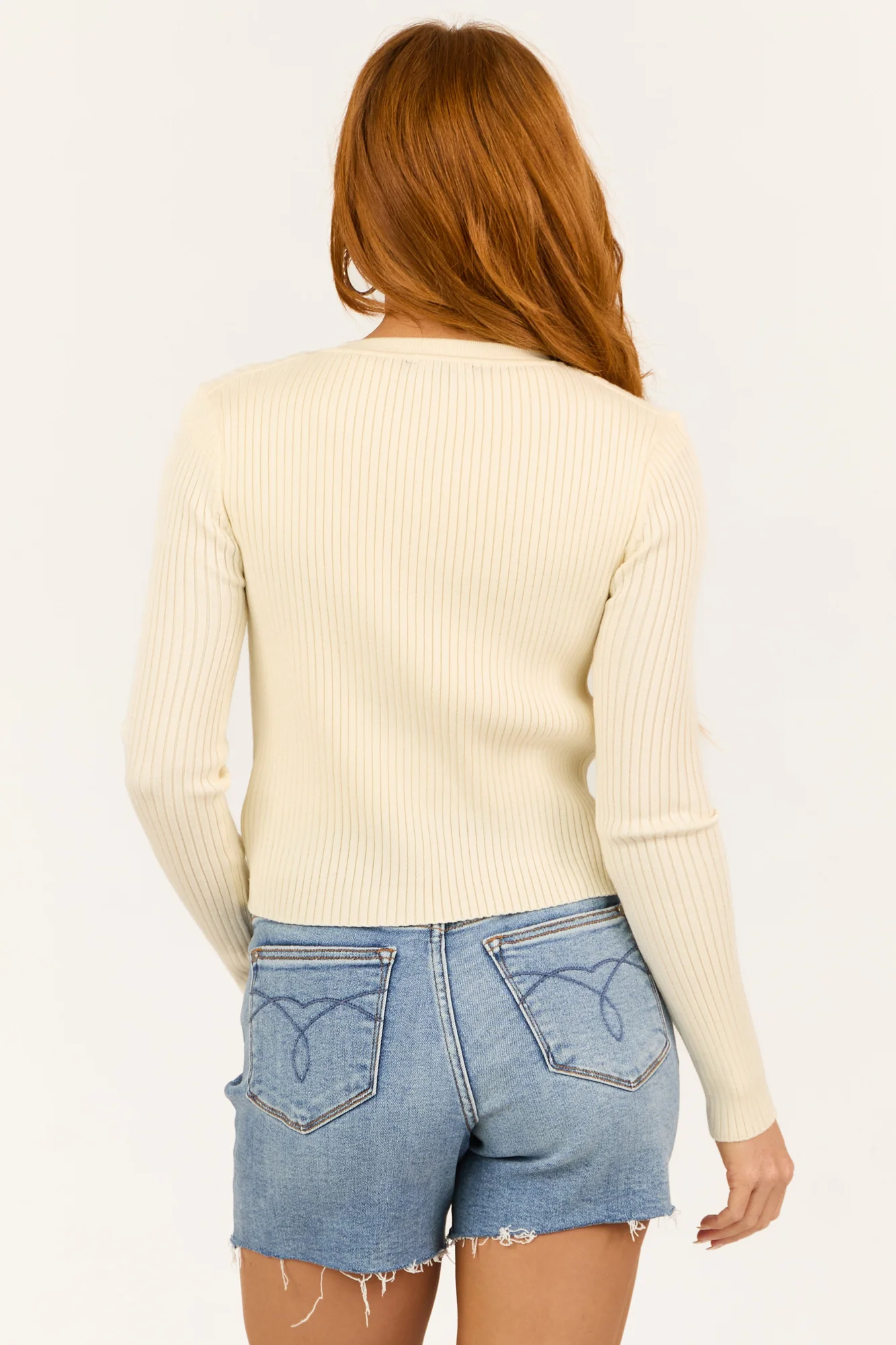 This Cream Ribbed Knit Button Down Cardigan offers a perfect blend of style and comfort. Crafted from a stretchy ribbed knit, it features a crew neckline and a flattering mid-length cut. Unlined and versatile, this cardigan is a wardrobe essential suitable for various occasions. Care instructions: Hand wash cold, line dry, iron at low heat. Available in sizes S, M, and L. Model is wearing a size Small – Size: 1, Height: 55″, Bust: 33″, Waist: 24″. Elevate your style effortlessly with this chic cardigan.
