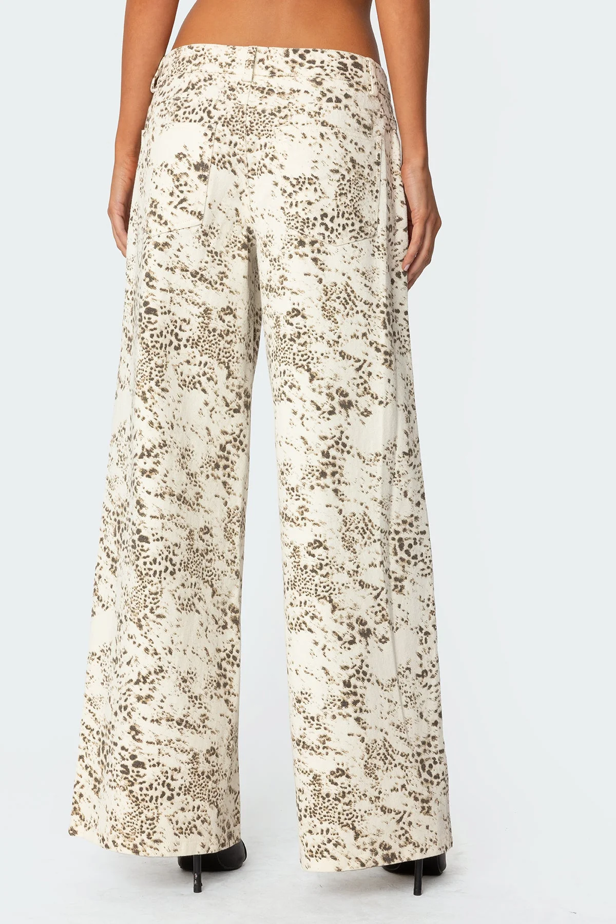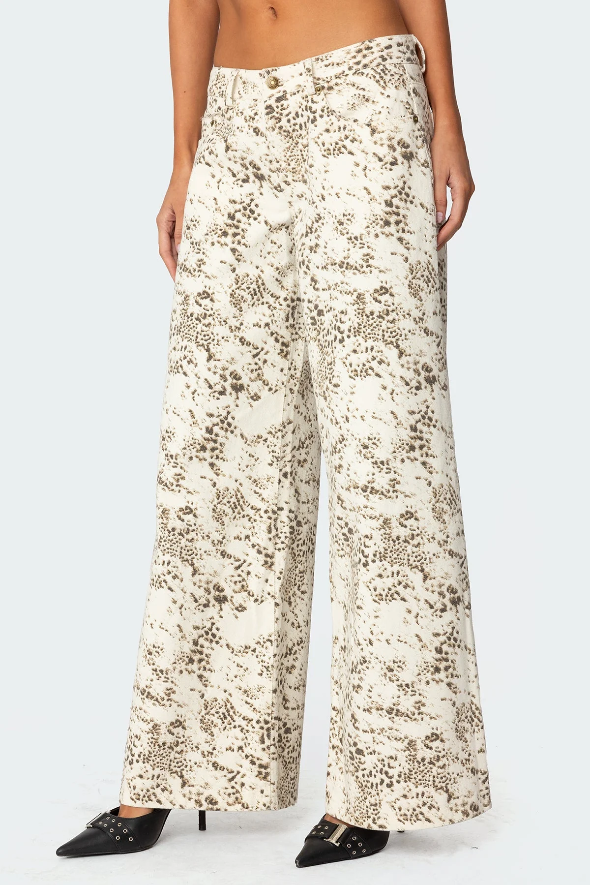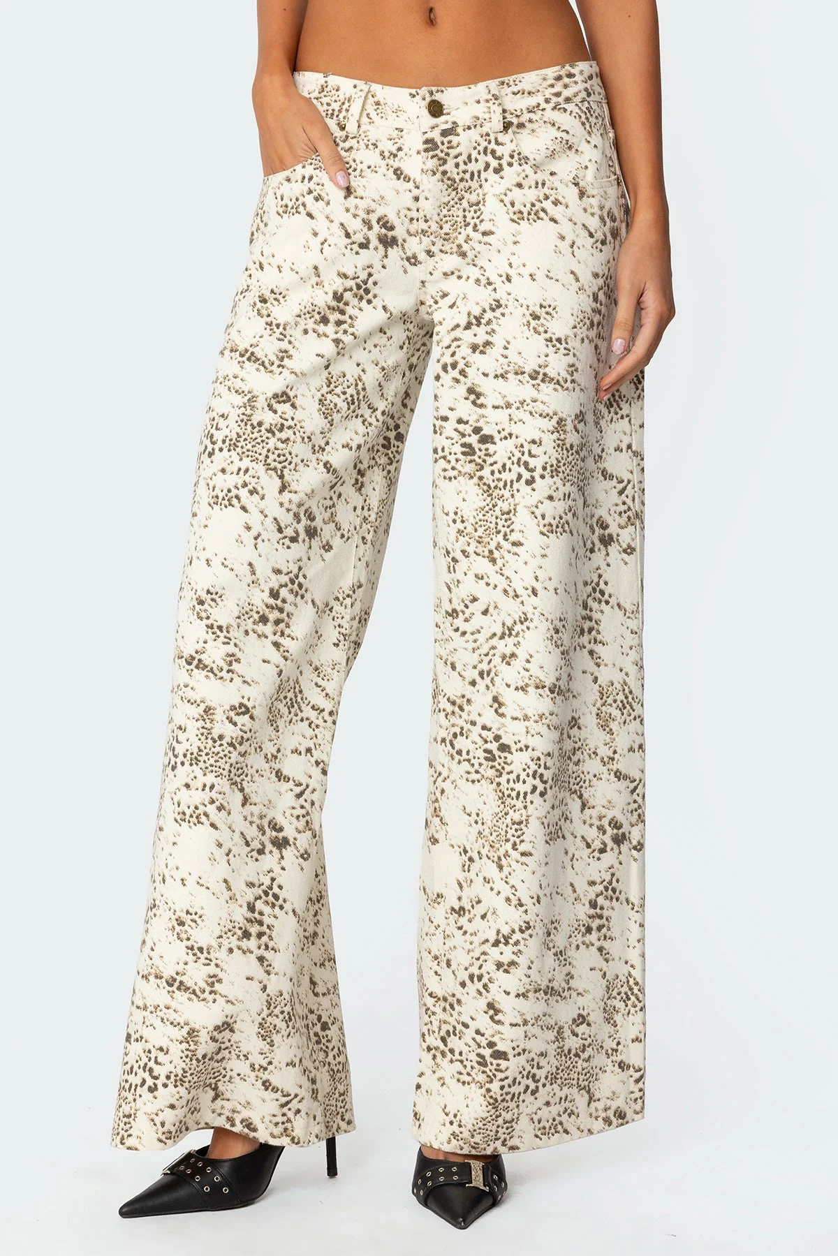 Upgrade your denim collection with these trendy Cream Snow Leopard Baggy Jeans. Featuring a low rise waist and comfortable baggy fit, these jeans are made from 100% Cotton for superior quality and style. The snow leopard printed fabric adds a unique touch to your look. Perfect for casual outings or a day at the mall. Machine washable for easy care. Available in sizes XS to XL.
