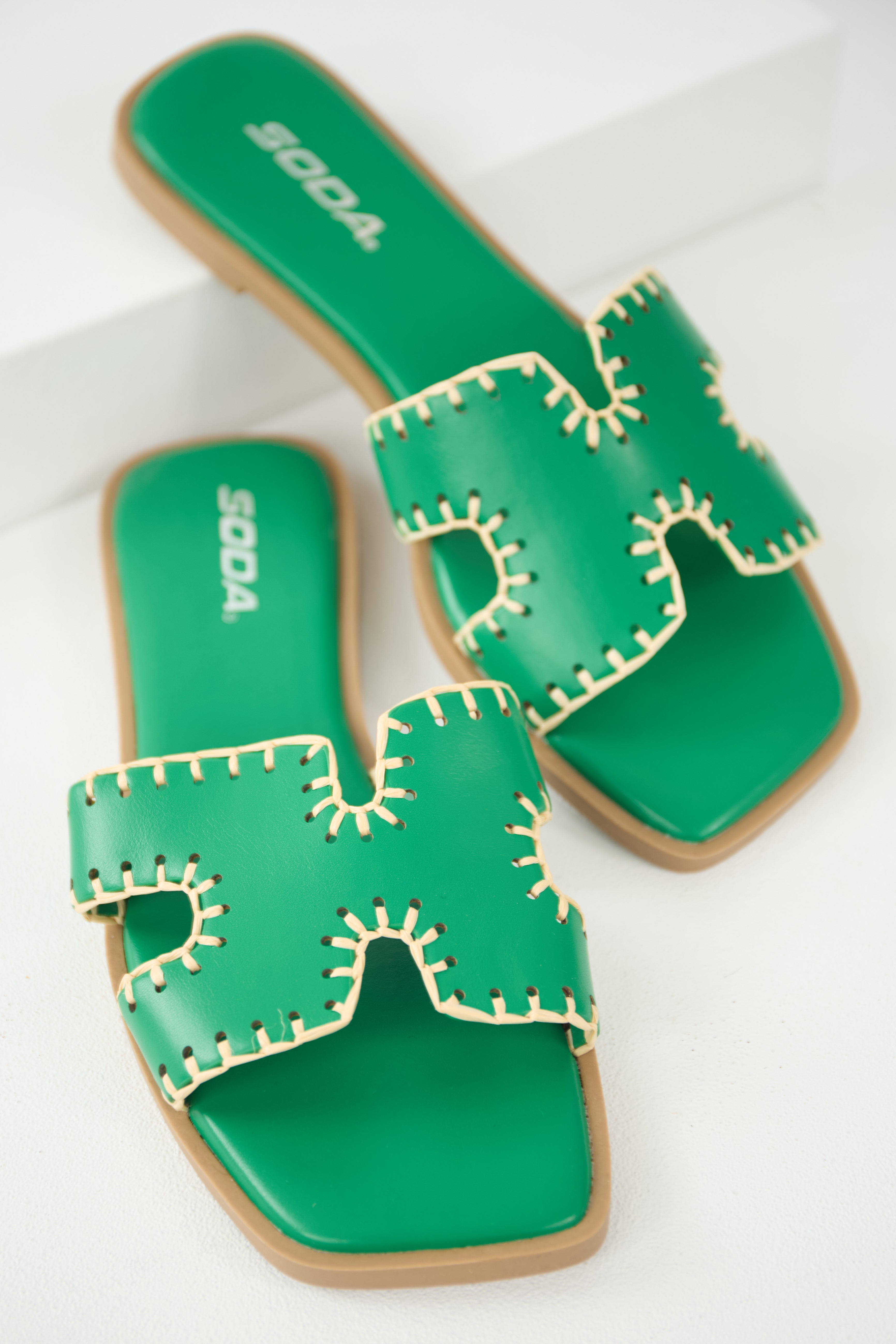 Tags: comfortable sandals, Cream Slide Sandals, Square Toe Shoes, Straw Trim Sandals