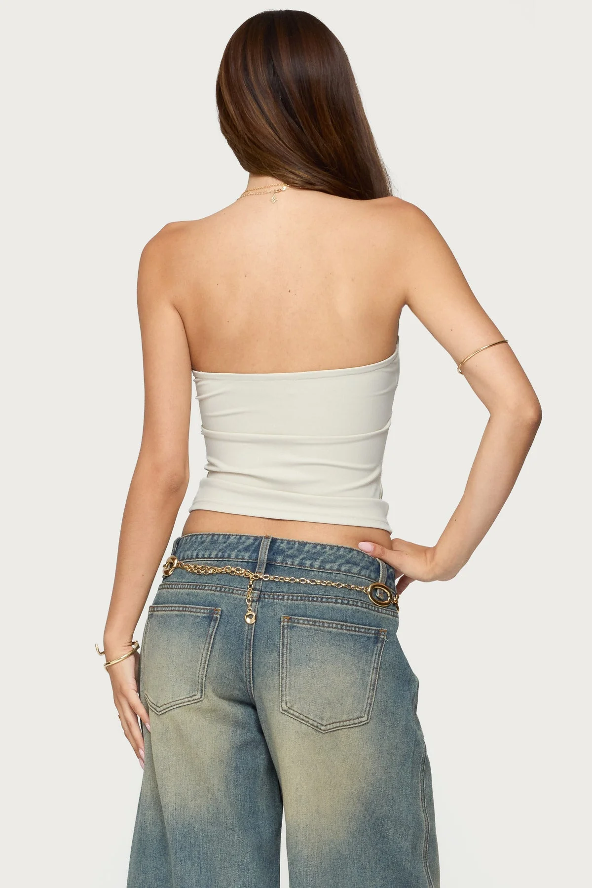 Upgrade your wardrobe with our elegant Cream Twist Front Tube Top. Made of high-quality Nylon and Spandex, this versatile top features a twist front detail for added style. Whether youre heading to a casual outing or a special event, this top is a perfect choice. The model wears size S and stands 59 tall. Machine washable for easy care.