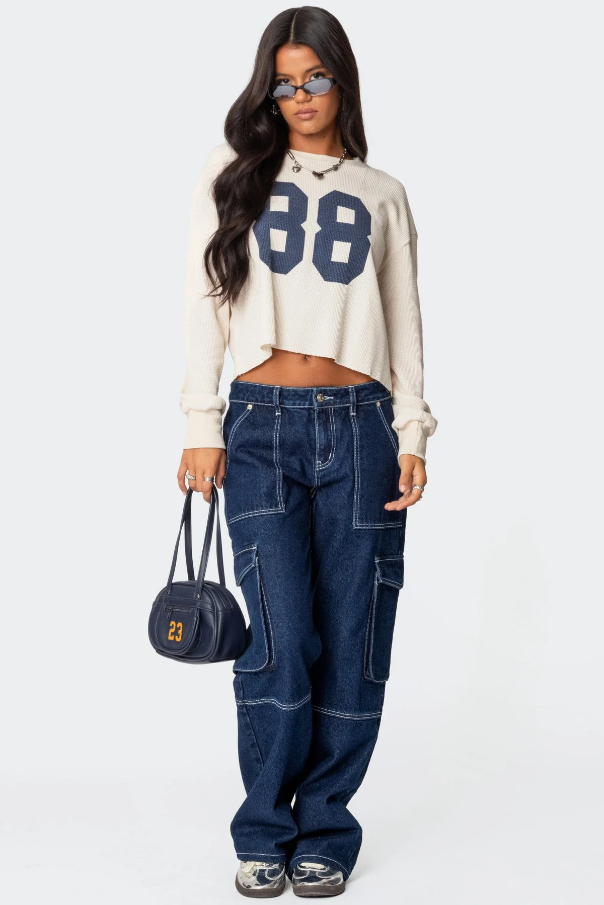 Stay cozy and stylish in our cream waffle knit long sleeve t-shirt. Featuring a raw hem and graphic text, this tee is made from a blend of polyester and cotton for ultimate comfort. Perfect for casual outings or relaxing at home. This model wears size S and is 58″ tall. For care, machine wash at 30ºC with similar colors, avoid bleach and tumble dry, iron at a max of 110ºC, and skip dry cleaning for longevity.