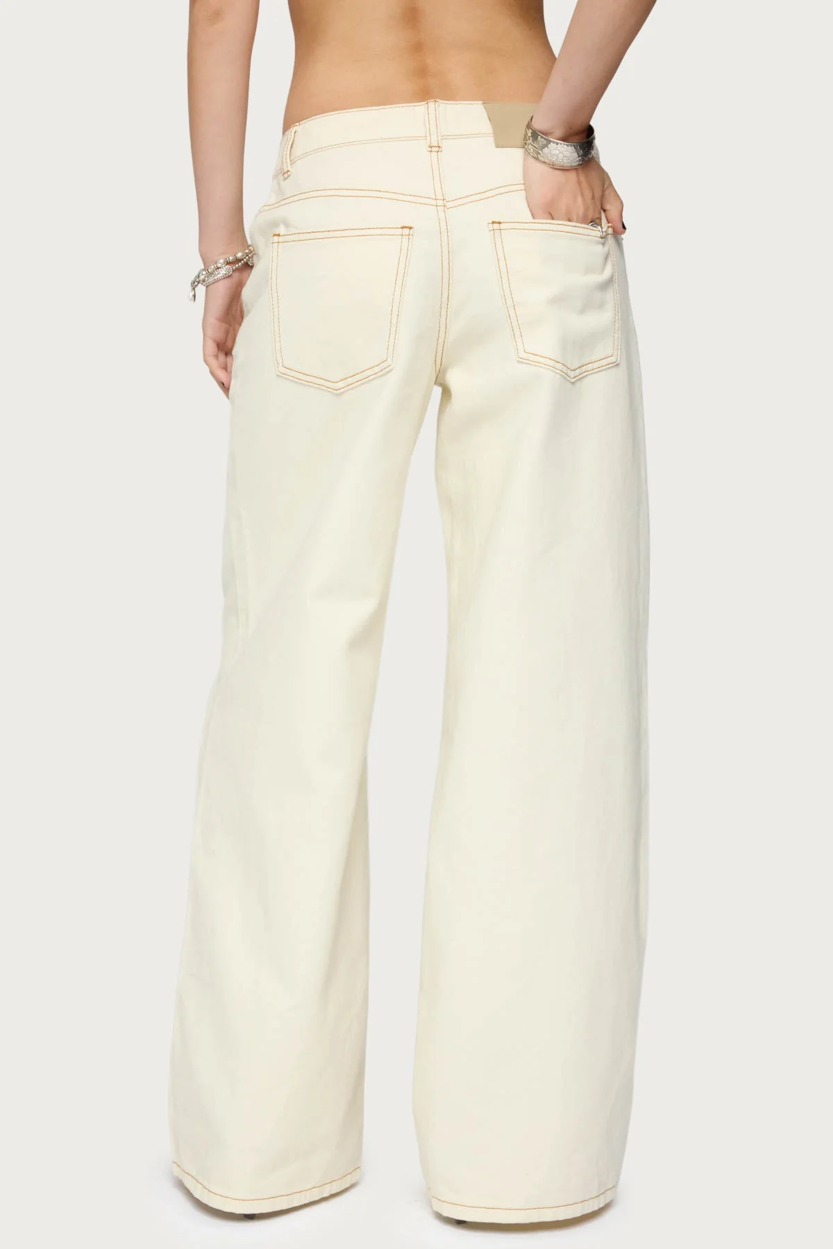 Discover the comfort and style of our Cream Wide Leg Denim Pants. These low-rise, straight-leg jeans feature contrast stitching and are made from 100% Cotton for a perfect fit. Easy to care for, machine wash at max 30ºC. Elevate your wardrobe with these trendy jeans today!