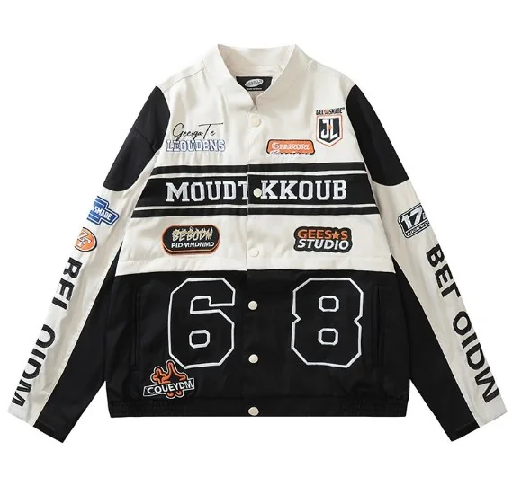Discover ultimate style and comfort with our Cropped Cotton Jacket featuring a motocross-inspired design. Embrace the snap button closure, embroidered patches, and 100% Cotton fabric for a fashionable look. The cropped fit adds a trendy flair to your outfit. Ideal for any casual occasion. Machine washable for easy care. Elevate your wardrobe with this statement piece!