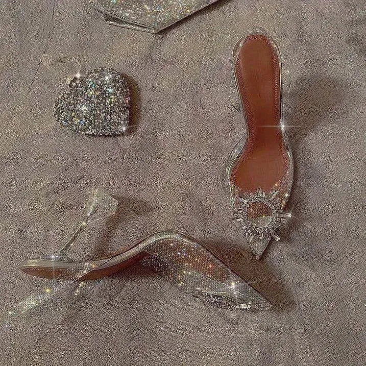 Elevate your style with our Crystal Brooch PVC Heels! Featuring a stunning crystal brooch, transparent PVC material adorned with rhinestones, and a comfortable 4-inch stiletto heel, these heels exude sophistication. The PVC ensures a perfect fit while showcasing your feet gracefully, adding glamour to any outfit. Explore more style ideas on Instagram @mermaid_way. Enjoy a complimentary exchange for size adjustments if needed.