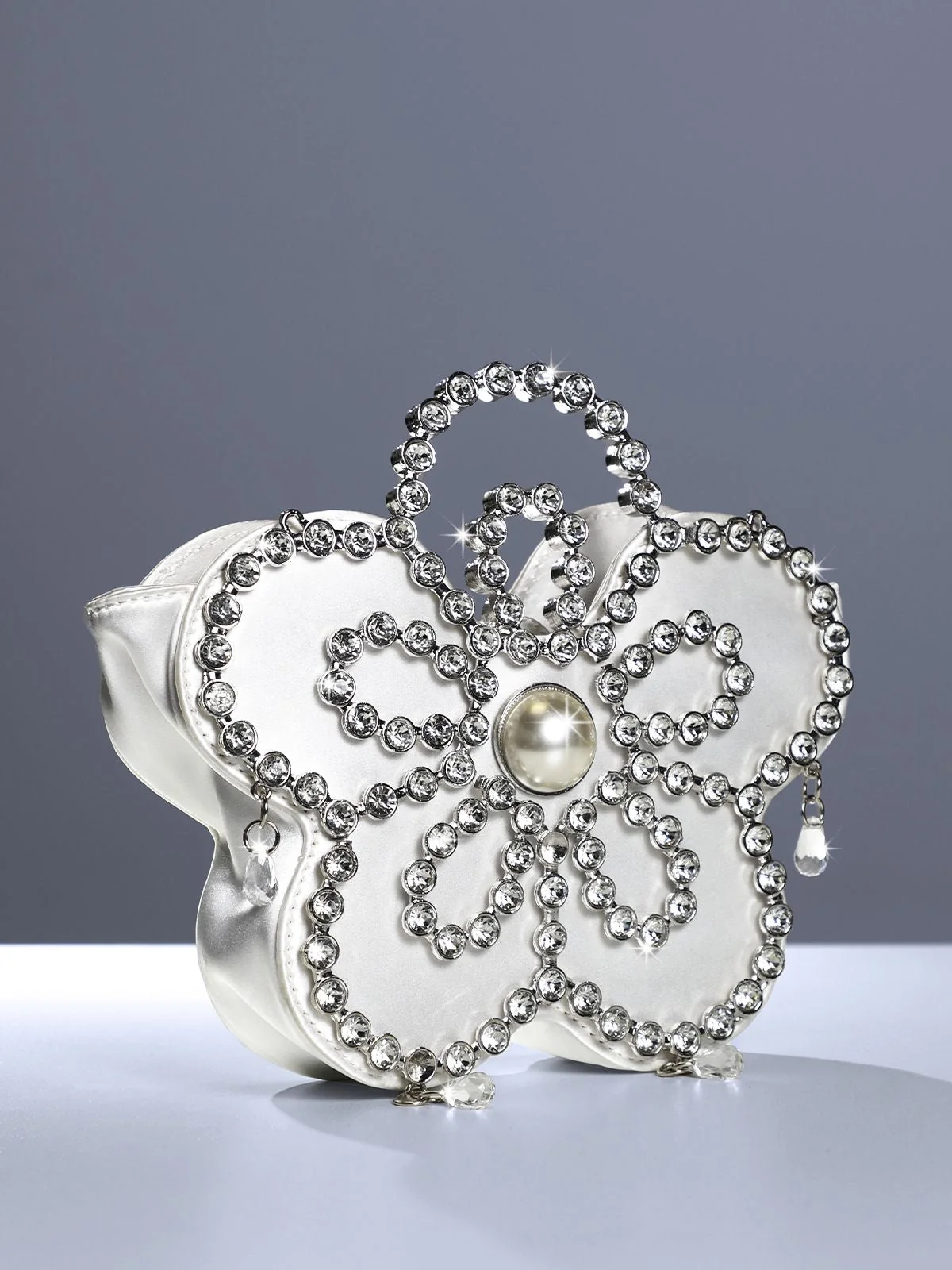 Discover the elegance of the Crystal Butterfly Design Elegant Bag in white, perfect for fashion enthusiasts. This stunning bag features shimmering crystals in a unique butterfly pattern, adding glamour to any outfit. Crafted from durable PU material, it offers both style and functionality with its spacious interior. Elevate your fashion statement with this exquisite piece today!