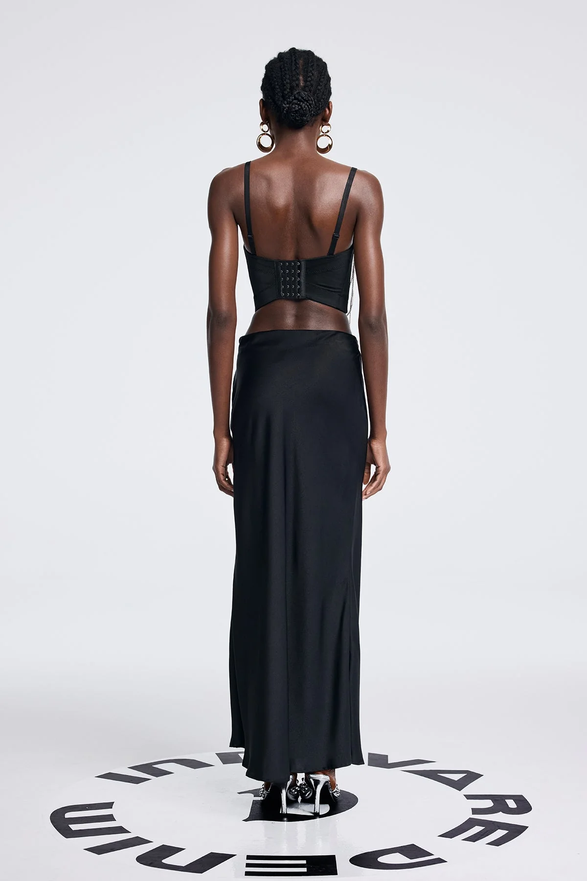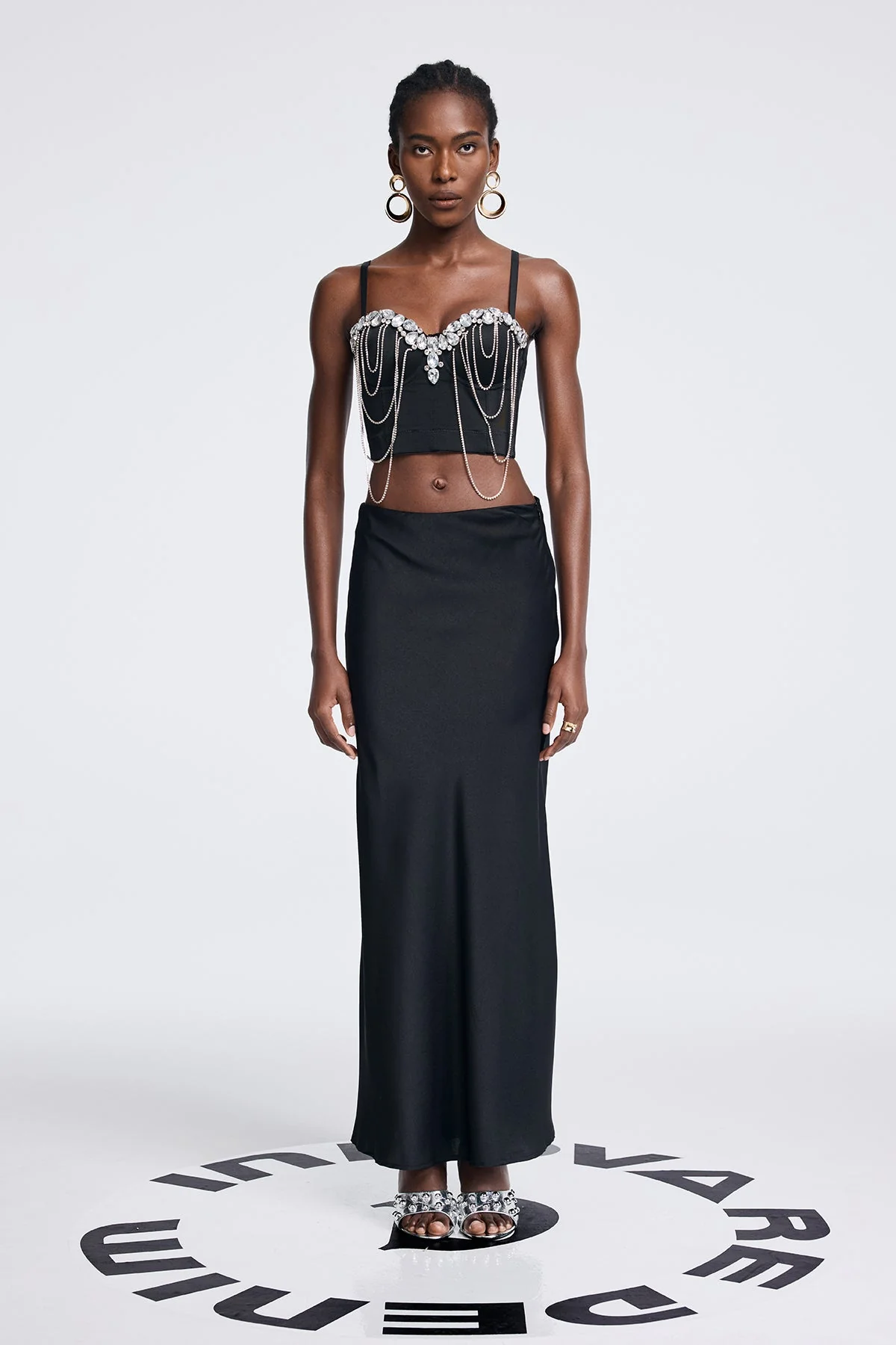 Indulge in the elegance of the Crystal Chain Denim Bodycon Top in Black. Crafted with premium denim and adorned with crystal chain detailing. This top offers both comfort and style, ideal for formal events or elevating a casual look. The material composition includes 50% Polyester and 50% Cotton, ensuring a luxurious feel. Please note, color may vary slightly due to lighting conditions during photography. Upgrade your wardrobe with this exquisite piece today!
