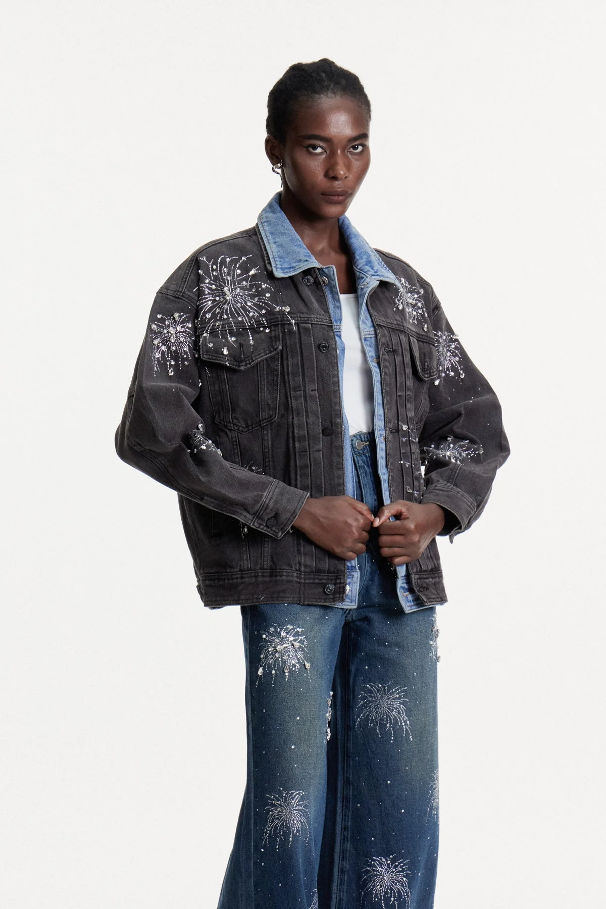 The Crystal Embellished Denim Jacket combines classic denim craftsmanship with subtle crystal adornments for elegant sparkle. Expertly crafted from high-quality denim, this jacket offers comfort and durability. Its tailored fit and thoughtful detailing elevate casual and semi-formal looks with understated luxury. This wardrobe essential is ideal for those seeking versatility and style. Stretch Factor: Non-Stretch. Care Instructions: Gentle machine wash. Please note, colors may vary due to lighting conditions in images.