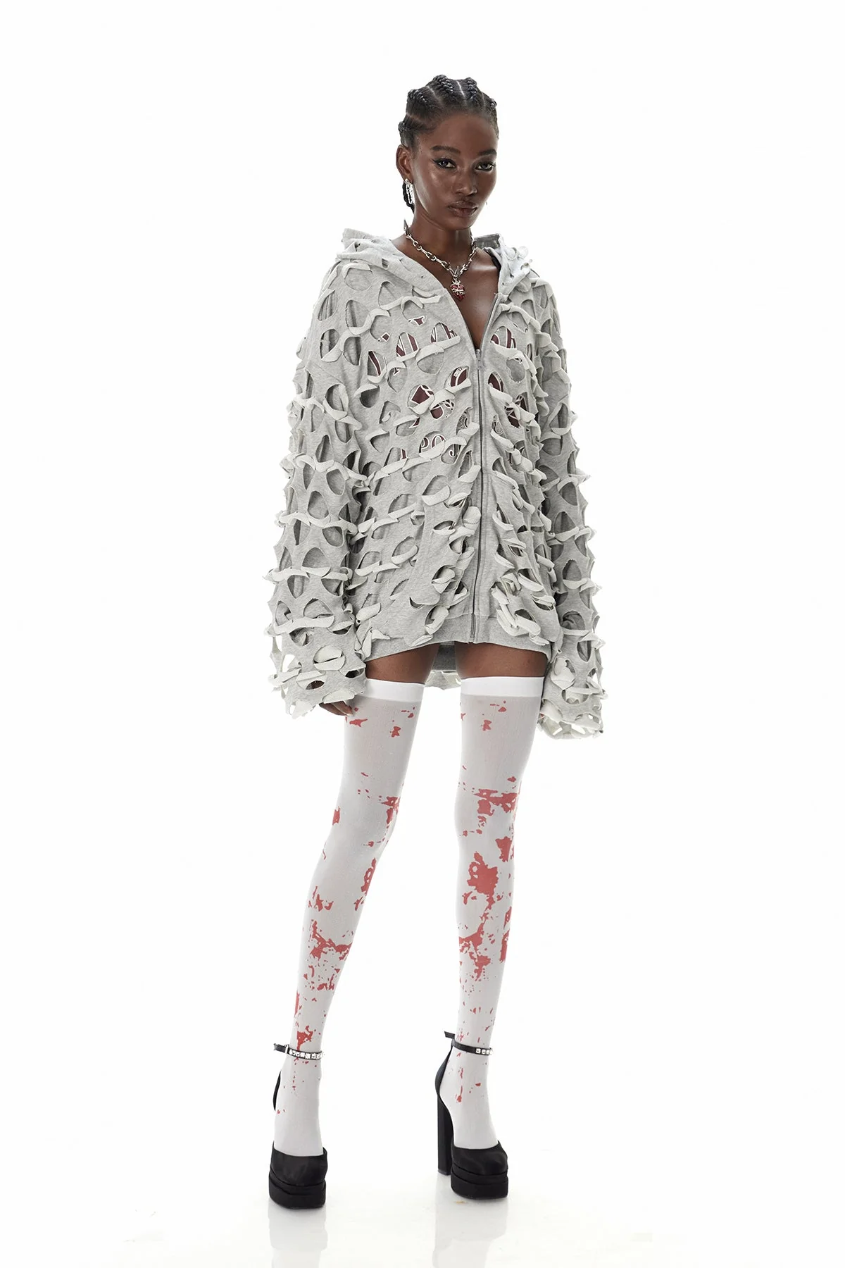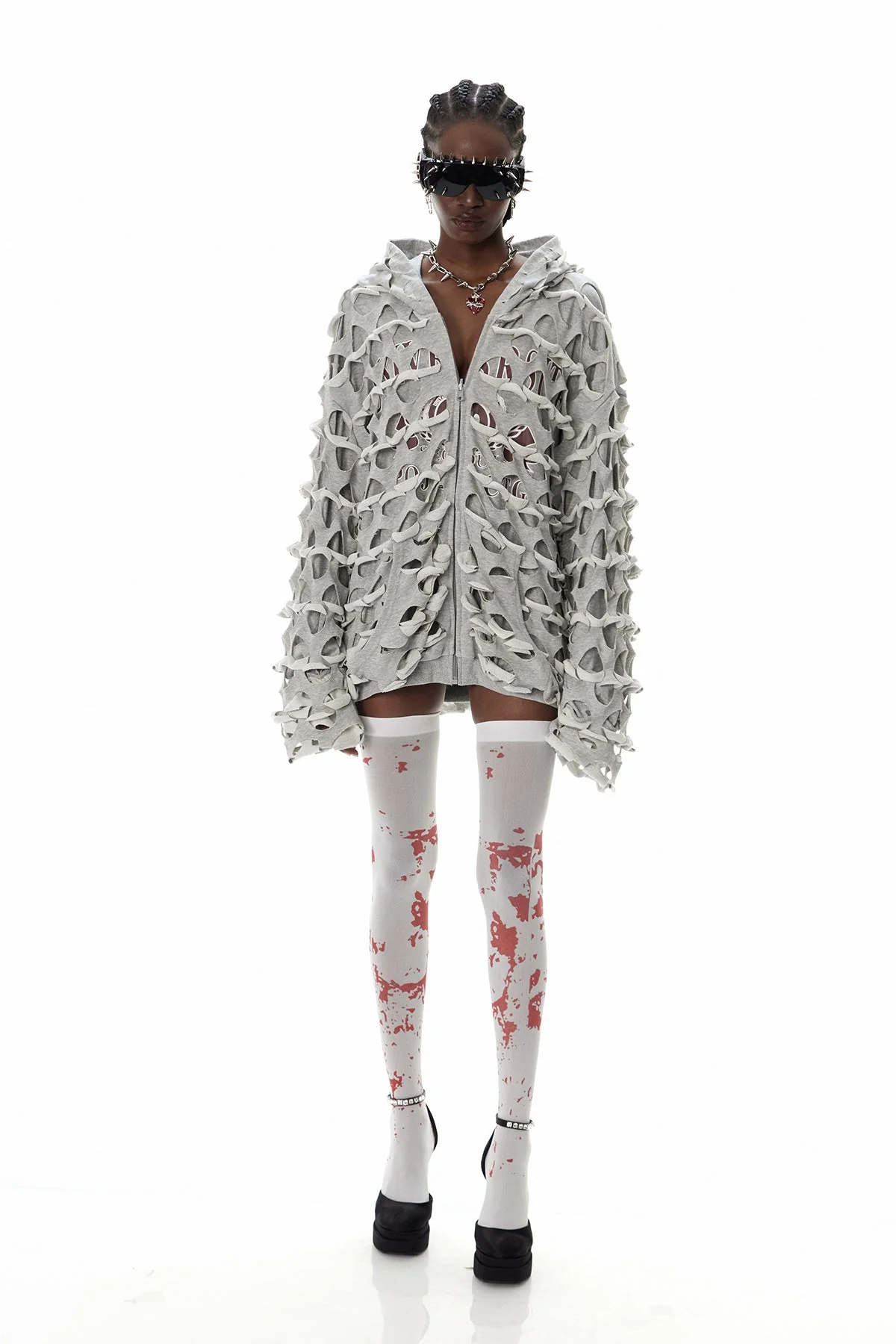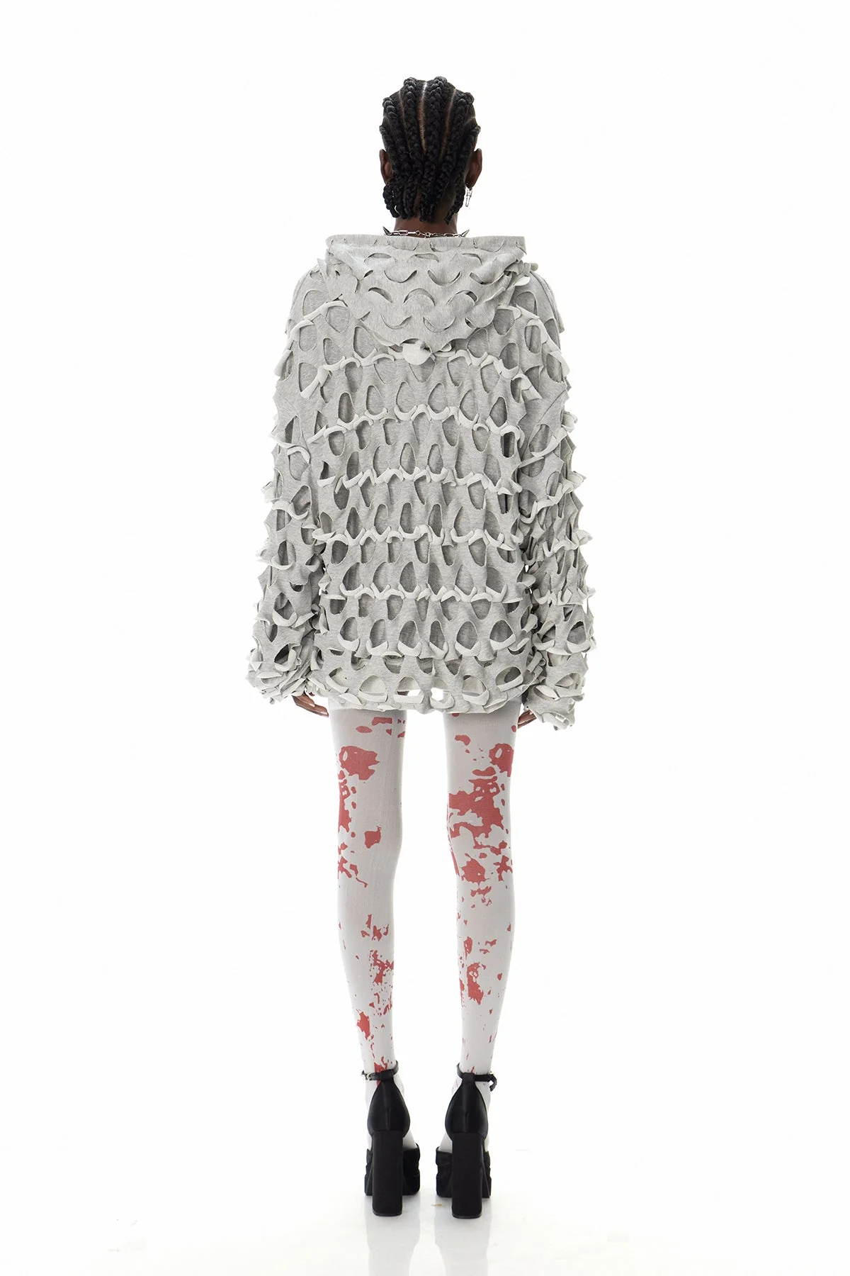 Experience the innovative design of the Cutout Hooded Jacket in Grey, crafted for urban environments. Stay stylish with strategic cutouts for breathability and an adjustable hood for versatile protection. This jacket blends fashion-forward details with durability, ensuring lasting performance. Ideal for various weather conditions with a tailored fit that exudes expert craftsmanship. Elevate your outerwear with this urban edge jacket today! Color may vary due to lighting. Gentle machine wash recommended for care.