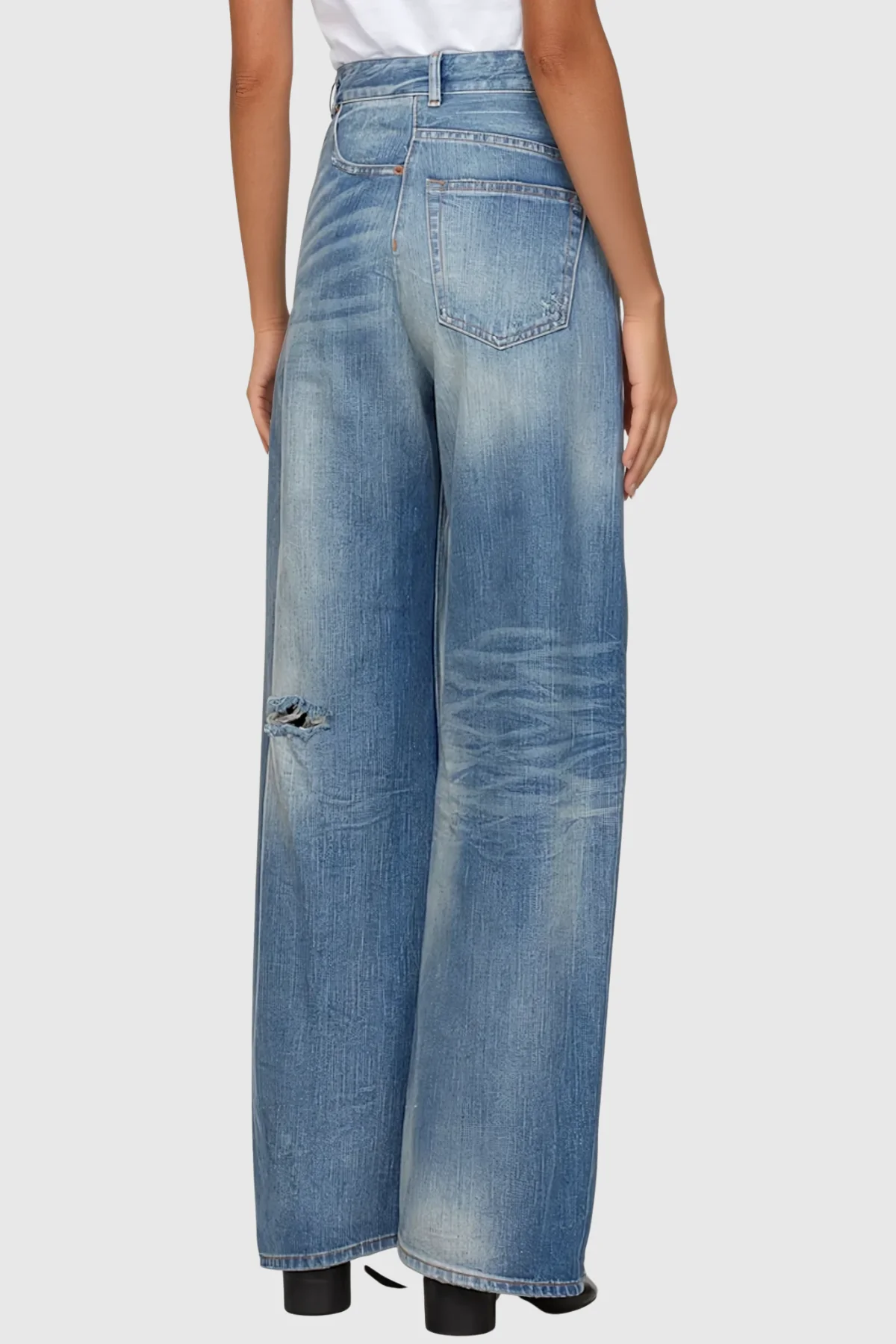 Discover the urban edge with our Cutout Torn Straight Jeans in Blue. Expertly crafted from durable denim, these jeans feature precise cutouts and intentional distressing for a bold, fashion-forward look. The classic straight-leg silhouette ensures both comfort and long-lasting wear, making them the perfect choice for those seeking edgy style without compromising quality. Elevate your casual outfits with a distinctive, modern flair. This item is non-stretch and should be gently machine washed. Please note that color may vary slightly due to lighting.