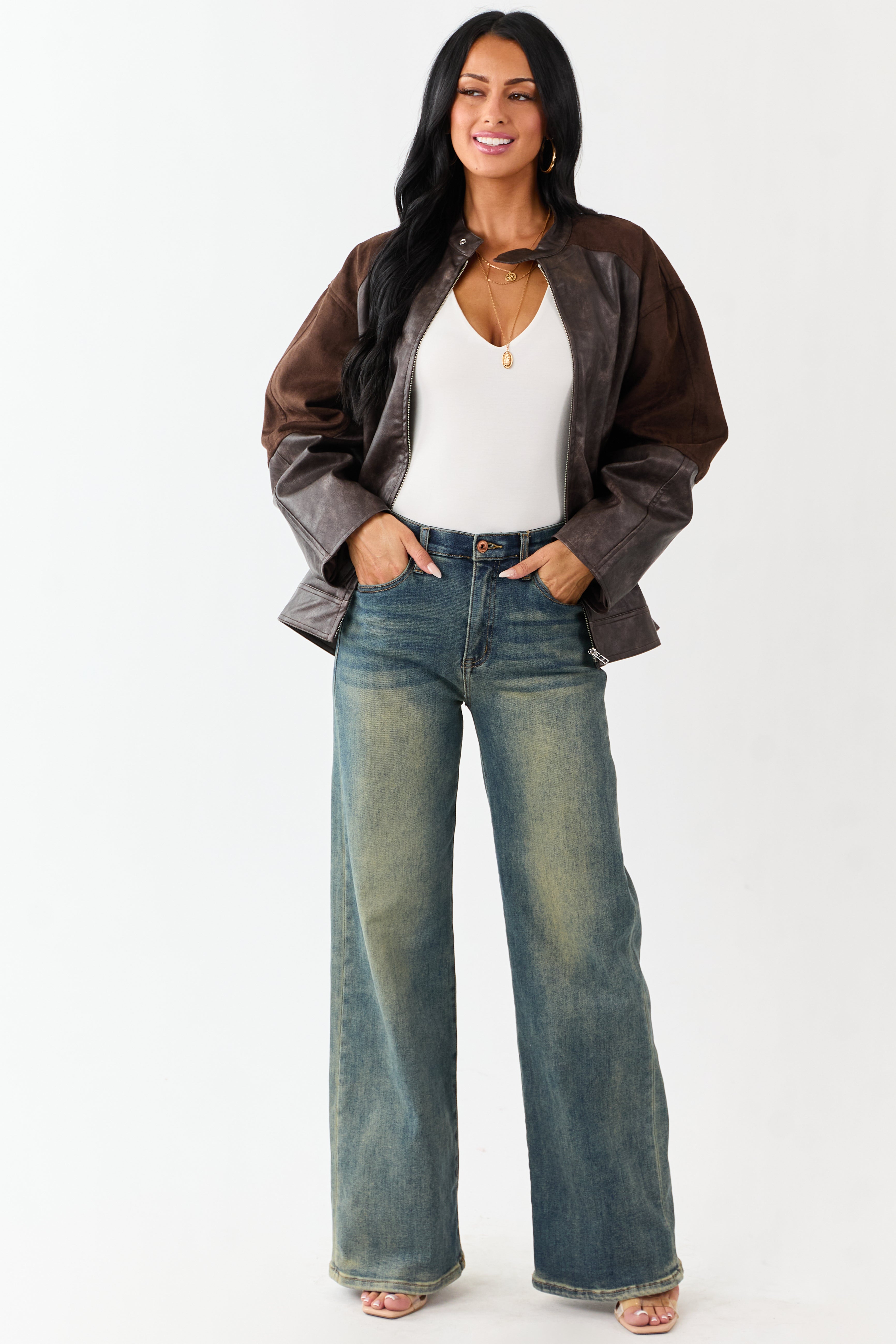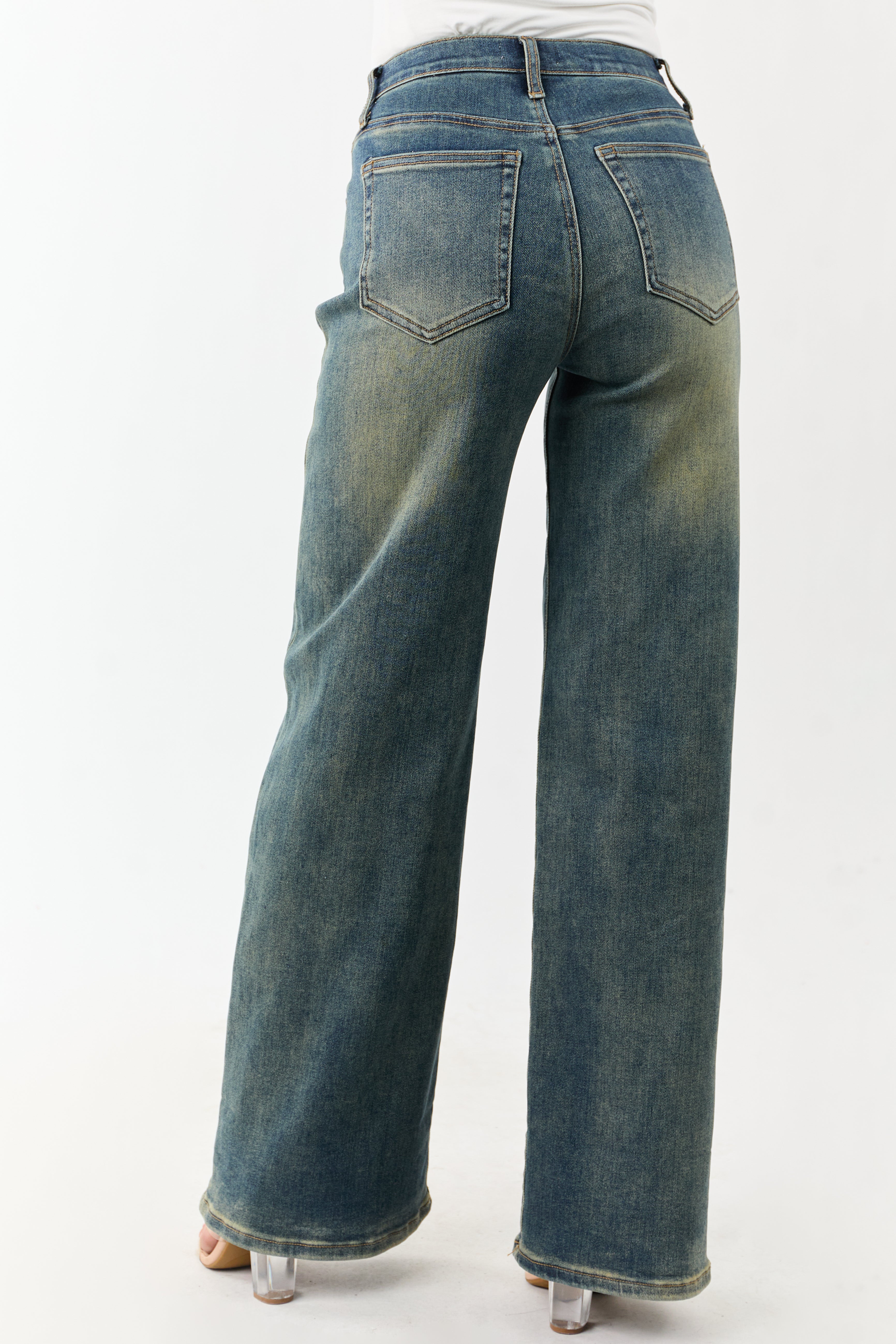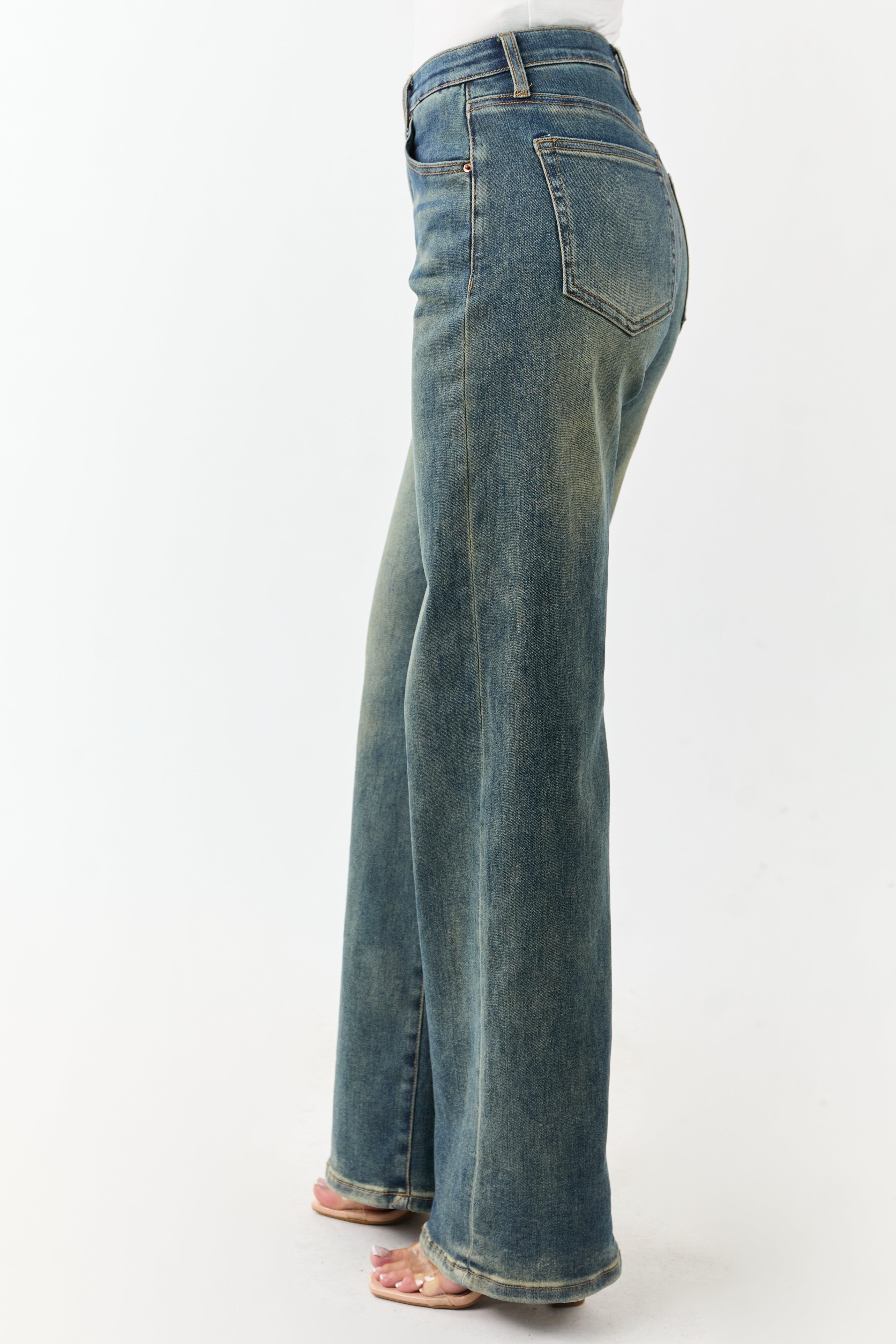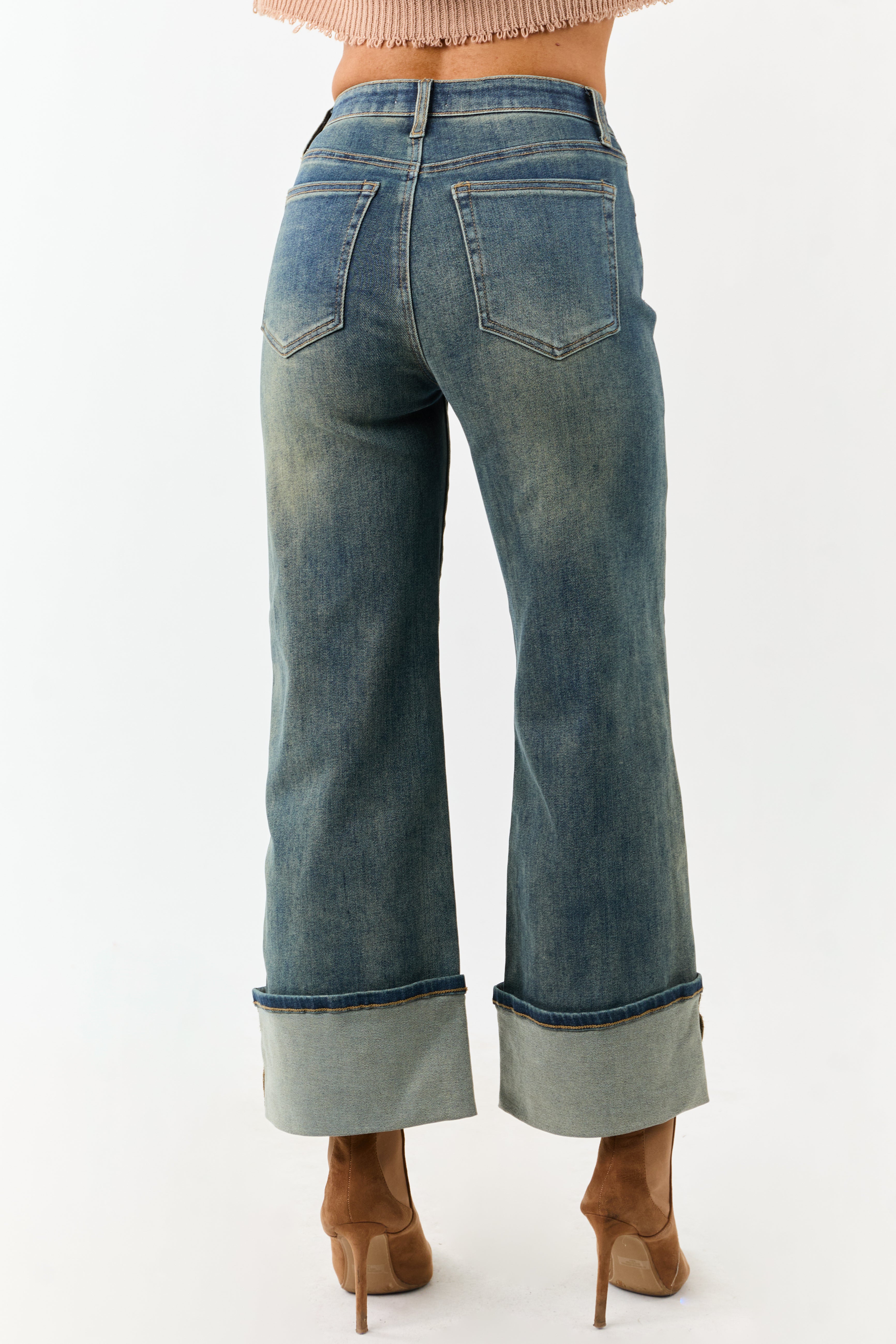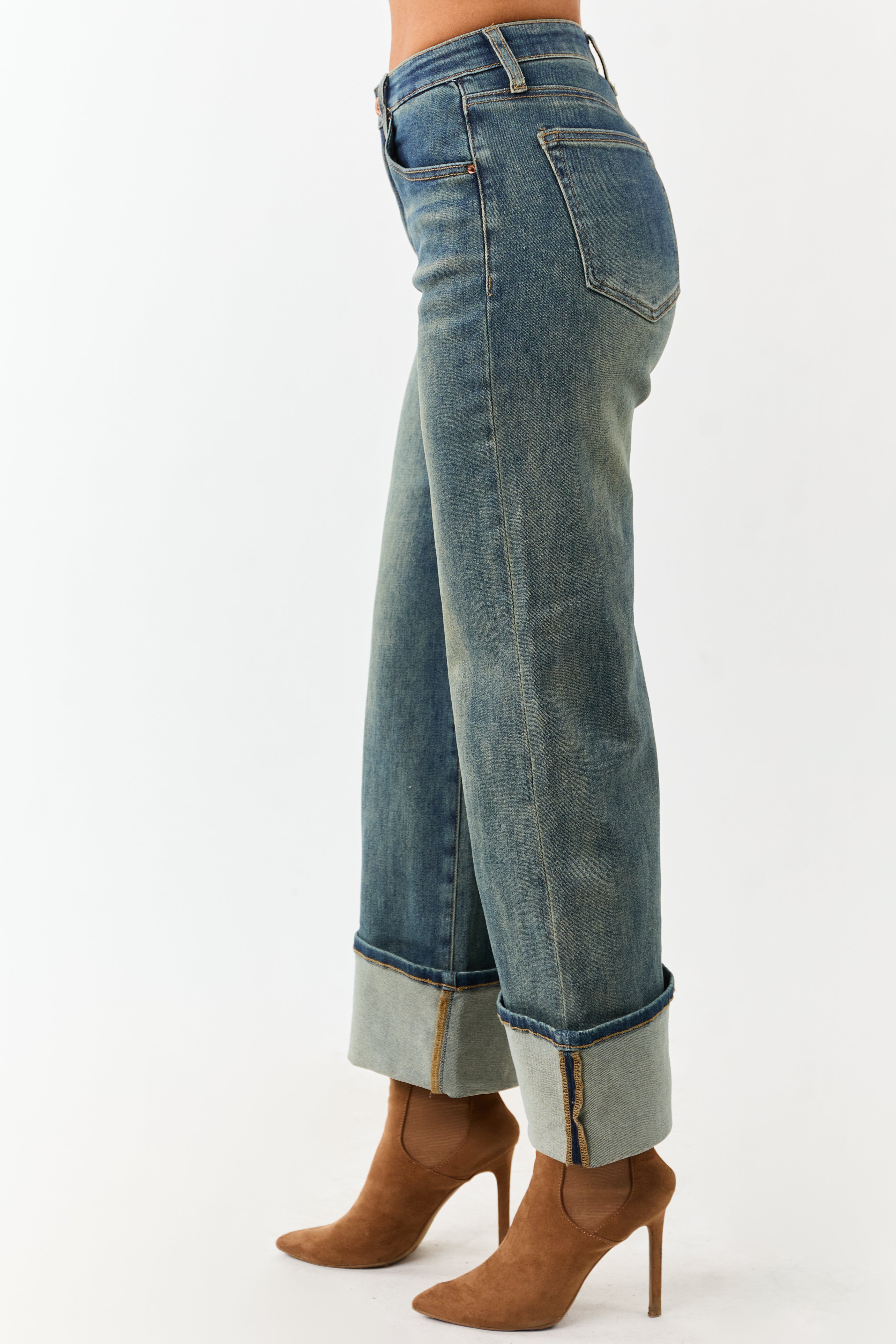 Upgrade your wardrobe with these Dark Vintage High Rise Tummy Control Straight Jeans. Enjoy the perfect blend of classic style and modern comfort featuring a hidden tummy control panel and optional cuffed hem. These jeans fit true to size and are crafted from stretchy denim (74% Cotton, 24% Polyester, 2% Spandex) for a relaxed straight fit. Complete your look by pairing them with the Cognac Soft Textured Knit Round Neck Boxy Sweater. Imported .