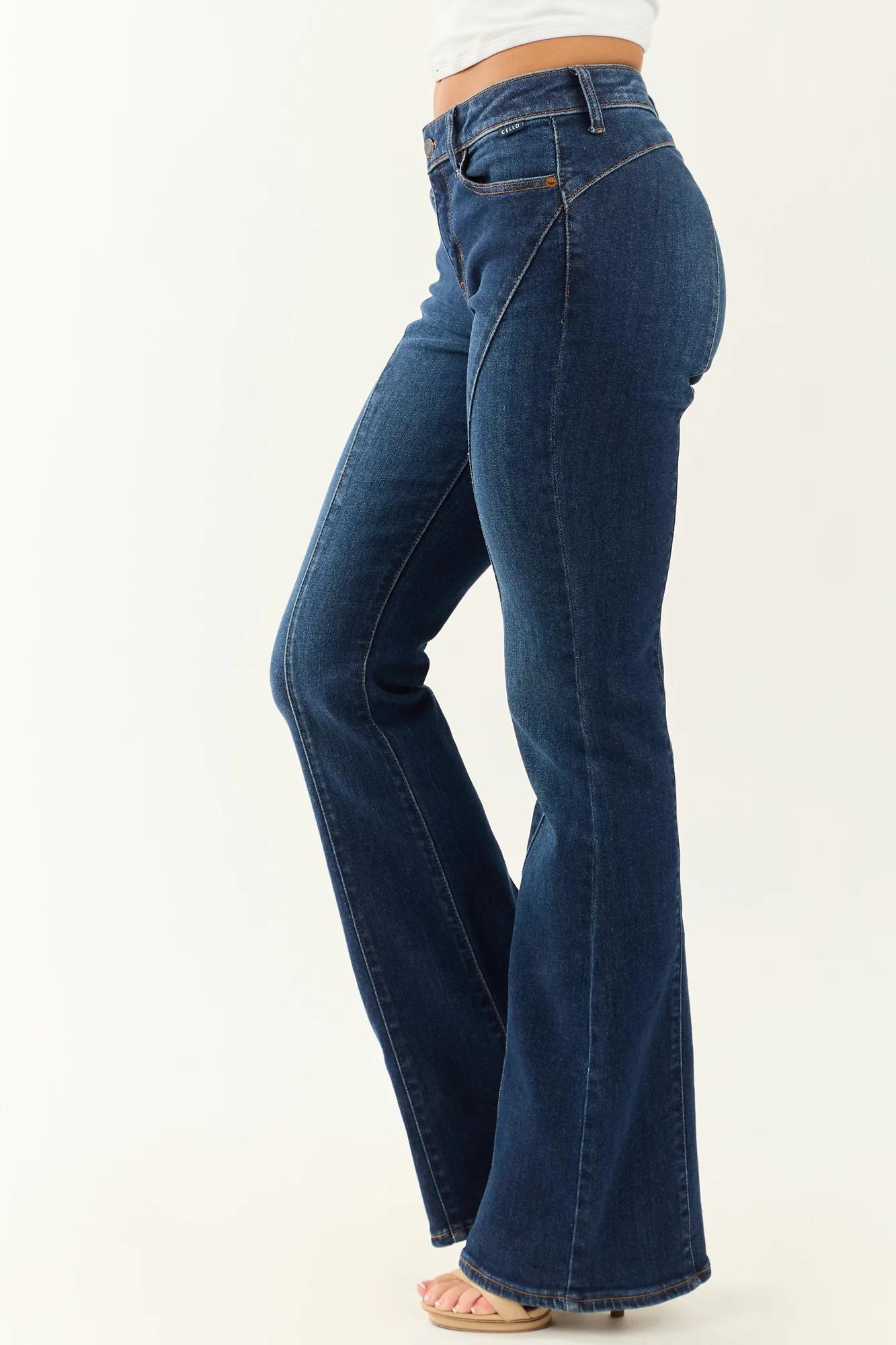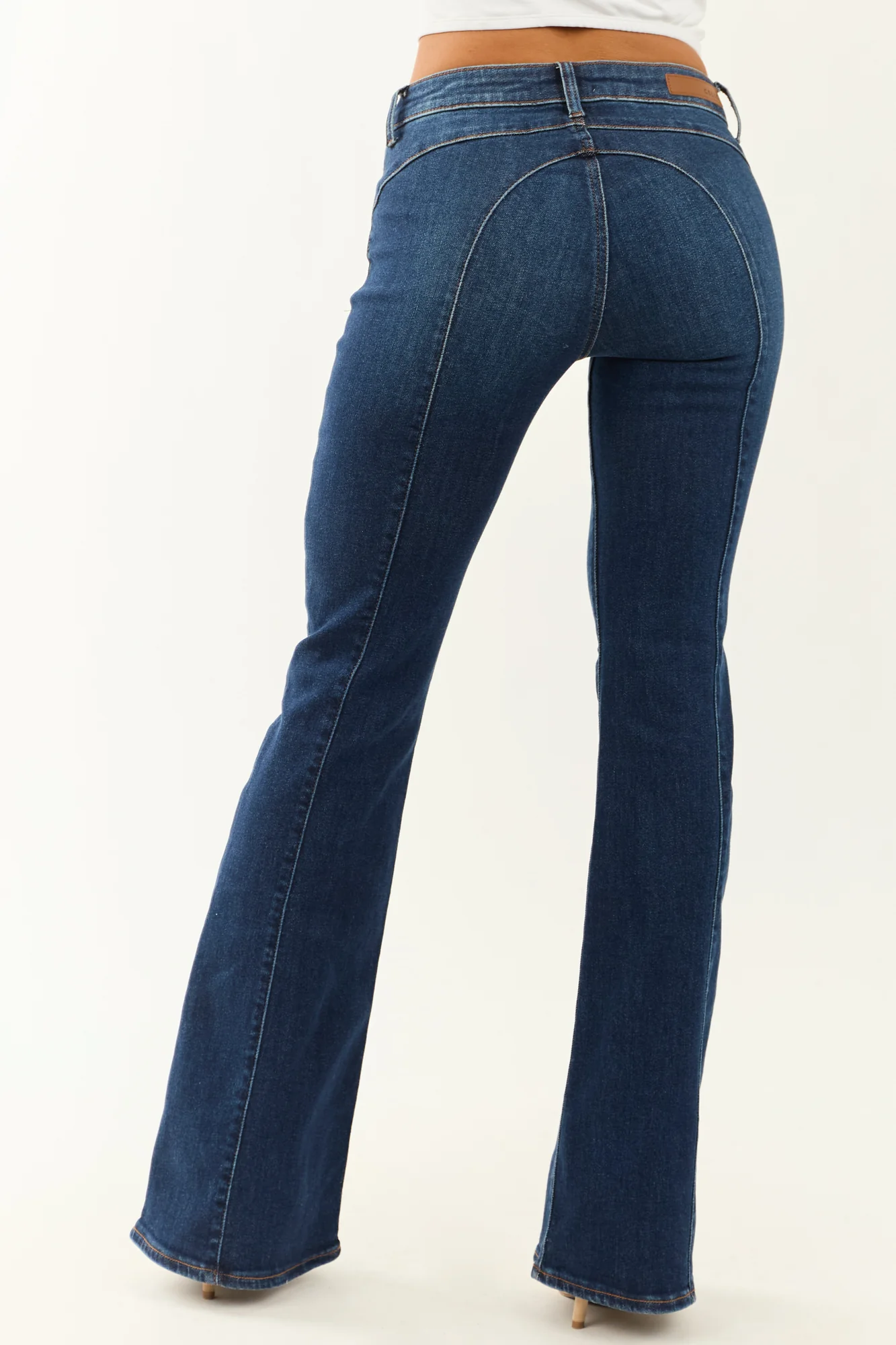 Elevate your style with our Dark Wash Flare Tall Length Jeans. These sleek, versatile, and always trendy jeans are perfect for any occasion. The semi-stretchy denim ensures a comfortable fit true to size. Designed with a low rise waistband that allows for extra space, they are very fitted in the hips, offering a flattering silhouette. Featuring a zipper fly with button closure and three pockets, these jeans also include a curved back seam detail for added charm. Made of 94% Cotton, 5% Polyester, and 1% Spandex, these jeans are fashionable and functional. Whether paired with heels or boots, these tall length jeans are a must-have in your wardrobe. Waist options: 26″-32″, Hip options: 30″-37″, with inseam of 34″ for the perfect fit.