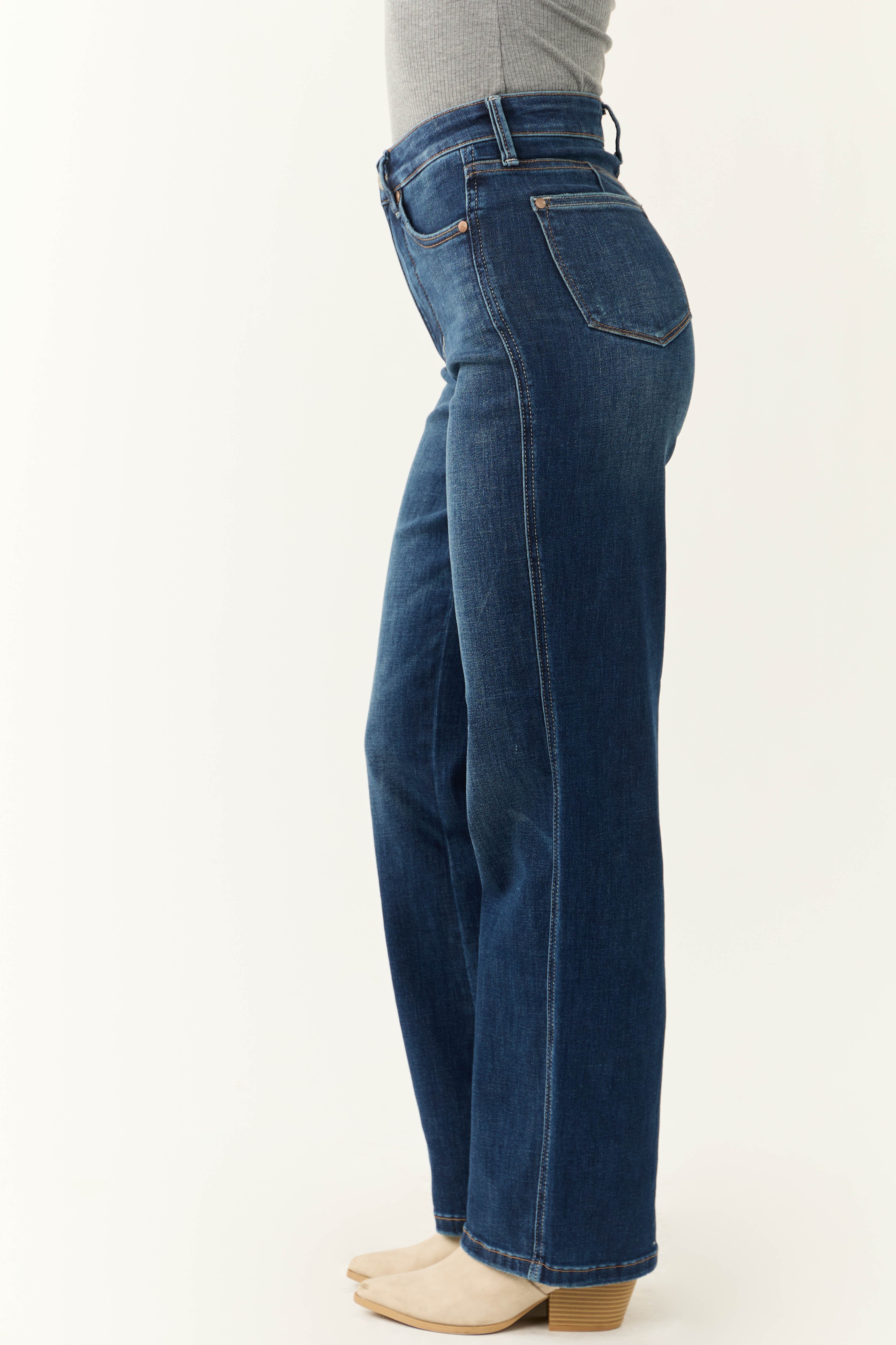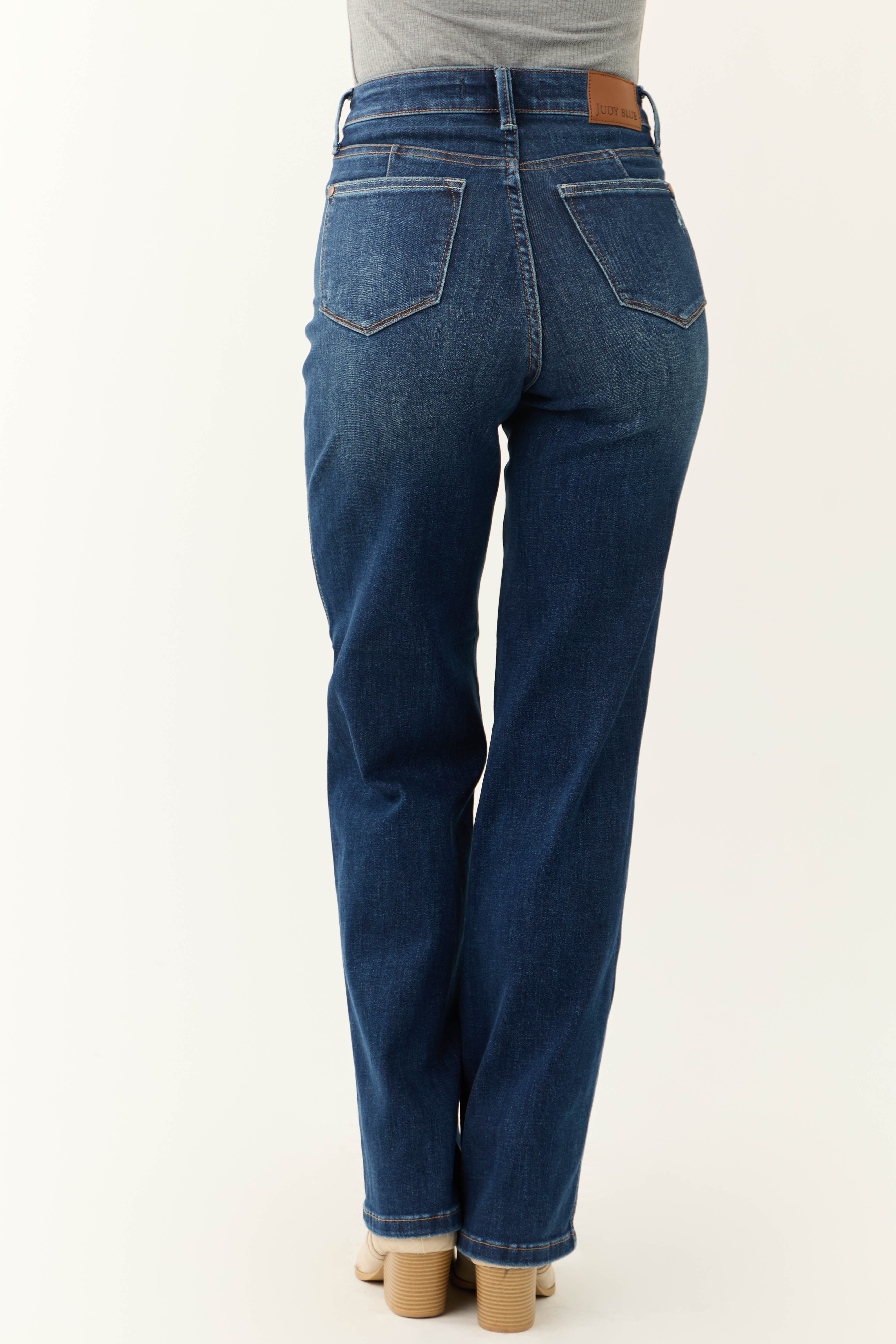 Experience ultimate comfort and style with our dark wash high waisted straight leg jeans featuring tummy control. Made of 74% cotton, 11% polyester, 7% rayon, 6% T400, and 2% spandex, these jeans offer stretchy denim for a perfect fit. With 5 pockets, zipper fly with button closure, and belt loops. Front rise: 10″, Back rise: 13.5″, Inseam: 31″. Fits true to size. Includes extra 1-3″ in waist for flexibility. Imported. Care instructions: Hand wash cold, wash dark colors separately, no bleach, lay flat to dry, low iron. Model is wearing a size 1. Model’s Profile: Size 1, Height 55″, Bust 31″, Waist 24″.