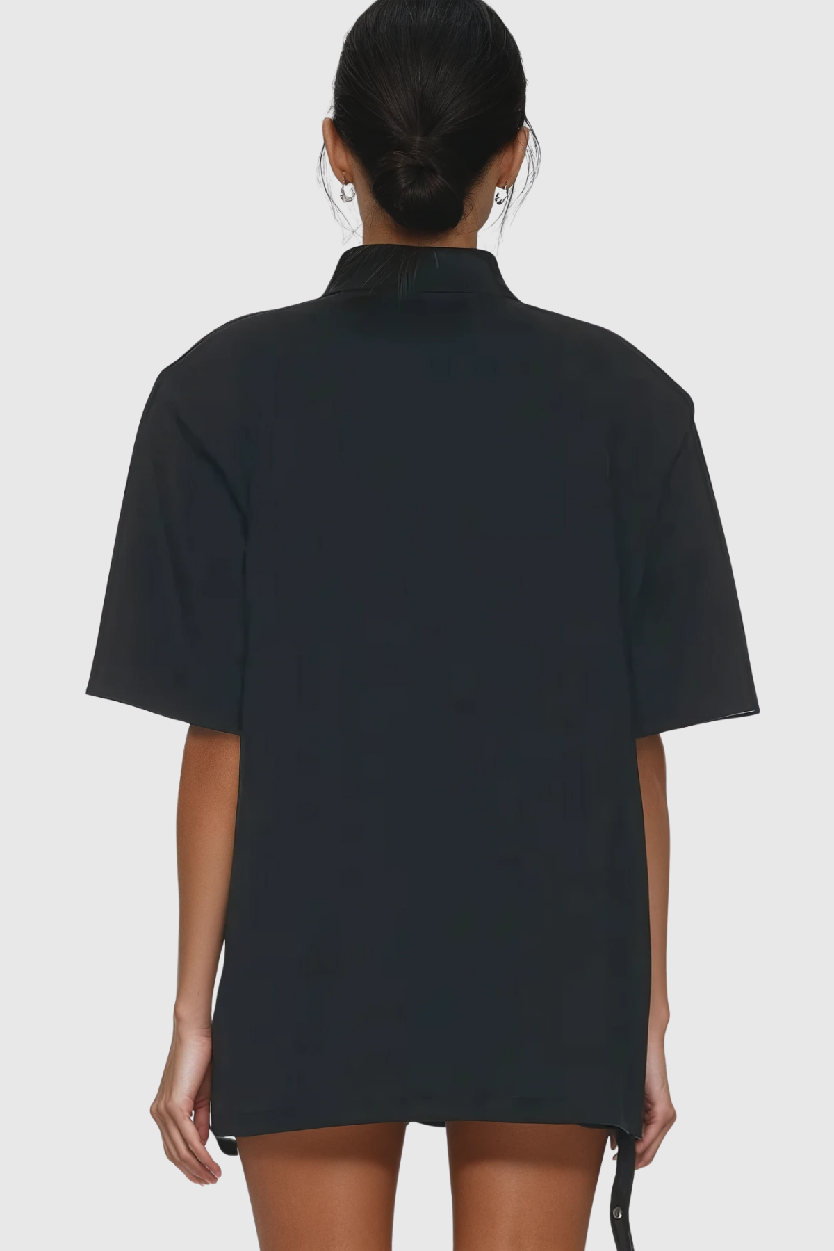 The Deconstruct Black Lapel Skirt Set blends innovative design with refined tailoring to create a sophisticated ensemble. This set showcases a unique deconstructed silhouette accented with intricate lapel embellishments for a touch of elegance. Crafted for those with an eye for avant-garde fashion, it strikes a perfect balance between structure and artistic flair, making it a standout choice for modern, elevated wardrobes. Not stretchy. Care instructions: Machine wash cold. Note: Actual color may vary slightly due to lighting conditions in images.