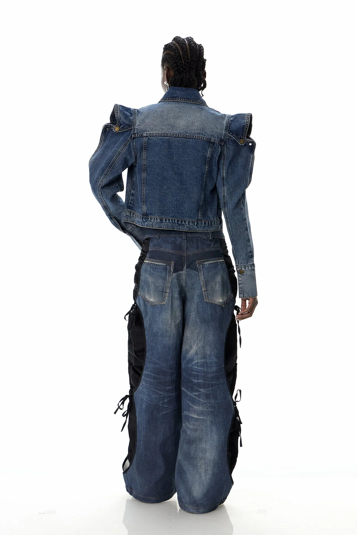 Revamp your urban wardrobe with our Deconstructed Cutout Denim Jacket in blue. Inspired by the mystical Cthulhu mythos, this premium denim jacket boasts avant-garde aesthetics with a durable design. Crafted for fashion connoisseurs, it merges artful elements in a statement piece that offers both style and comfort. Make a bold fashion statement with this exquisite jacket. Color variations may occur due to studio lighting. Ideal for gentle machine wash.