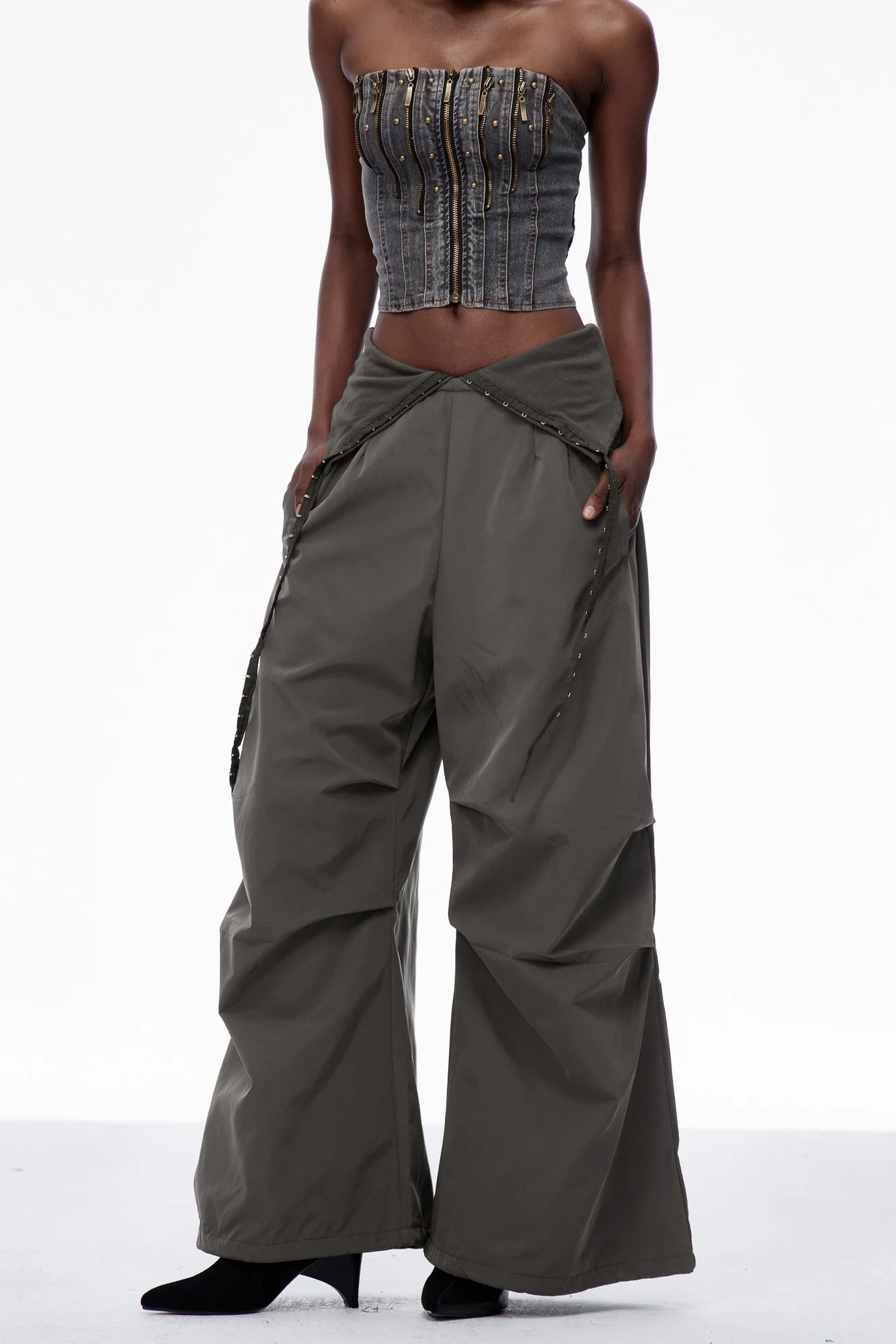 Discover the sophisticated comfort of deep green lapel wide leg pants . Perfect for professional or casual wear, these non-stretch pants feature a modern lapel detail for a refined touch. With a roomy design and elegant style, these pants offer effortless movement and timeless elegance. The deep green hue adds a touch of urban edge to your wardrobe. Crafted for both comfort and style, these pants are ideal for those seeking a relaxed yet polished look. Color may vary in different lighting conditions. Clean with a gentle machine wash for easy care and maintenance.