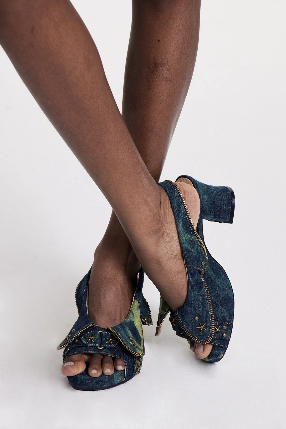 Upgrade your summer footwear collection with these Denim Embellished Sandal Shoes . Crafted in durable denim and featuring tasteful embellishments, these sandals seamlessly blend style with comfort for everyday wear. The robust sole ensures enduring support, while the open-toe design enhances breathability, making them ideal for warm weather activities. Whether for casual outings or more formal events, these sandals effortlessly merge contemporary fashion with practical functionality. With an approximate 5 cm/2.0-inch heel and round toe, youll enjoy both elegance and ease with every step.