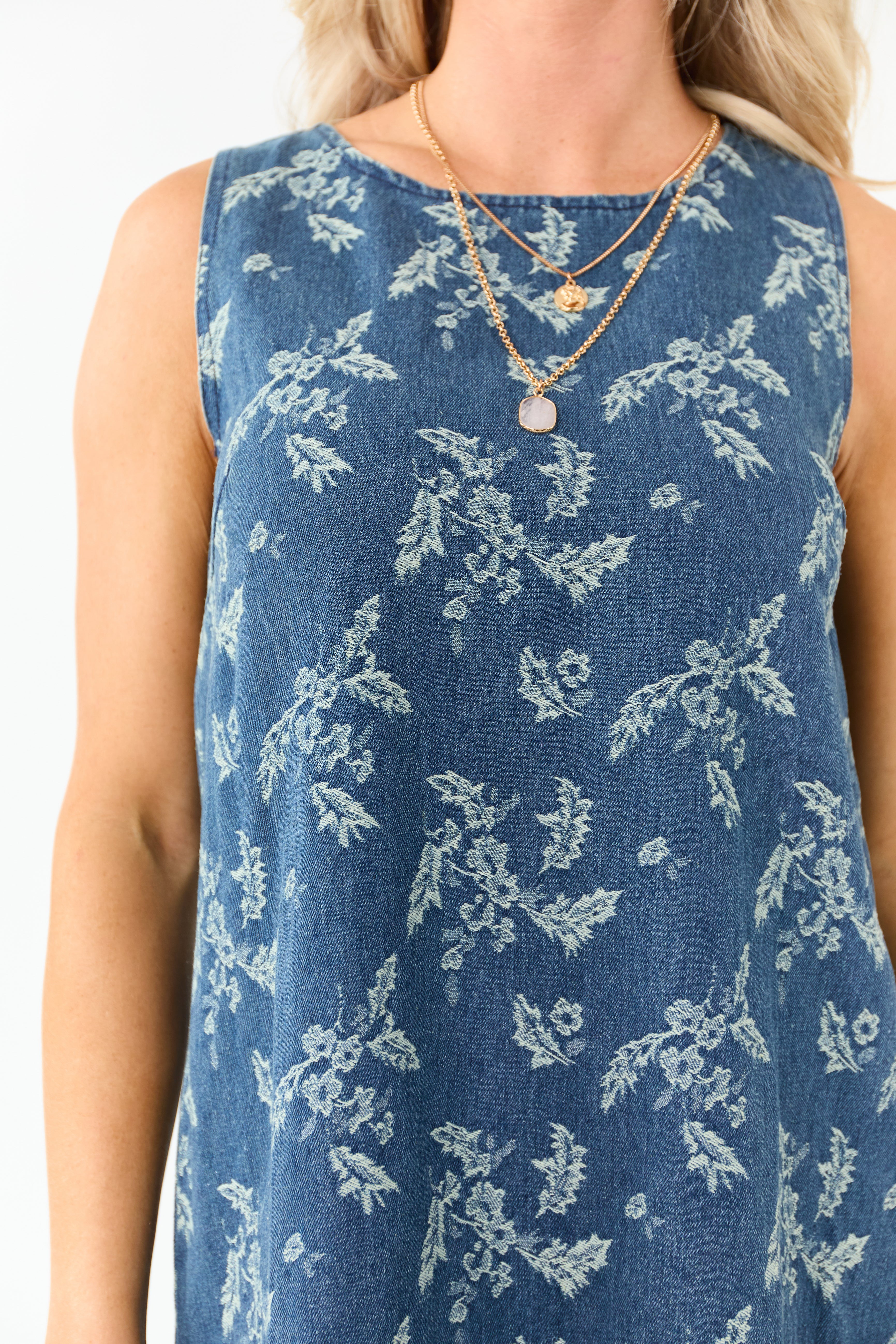 Experience vintage-inspired denim with a feminine twist in this Denim Floral Jacquard Shift Mini Dress. The floral jacquard adds a touch of elegance to the classic silhouette. Crafted from a blend of 85% Cotton and 15% Polyester, this non-stretchy dress features a hidden back zipper with hook and eye closure for easy wear. Unlined for a lightweight feel. Detailed with a bust size of 34″ and waist size of 38″ for size SM. Embrace the timeless charm of denim and flowers with this exquisite dress.