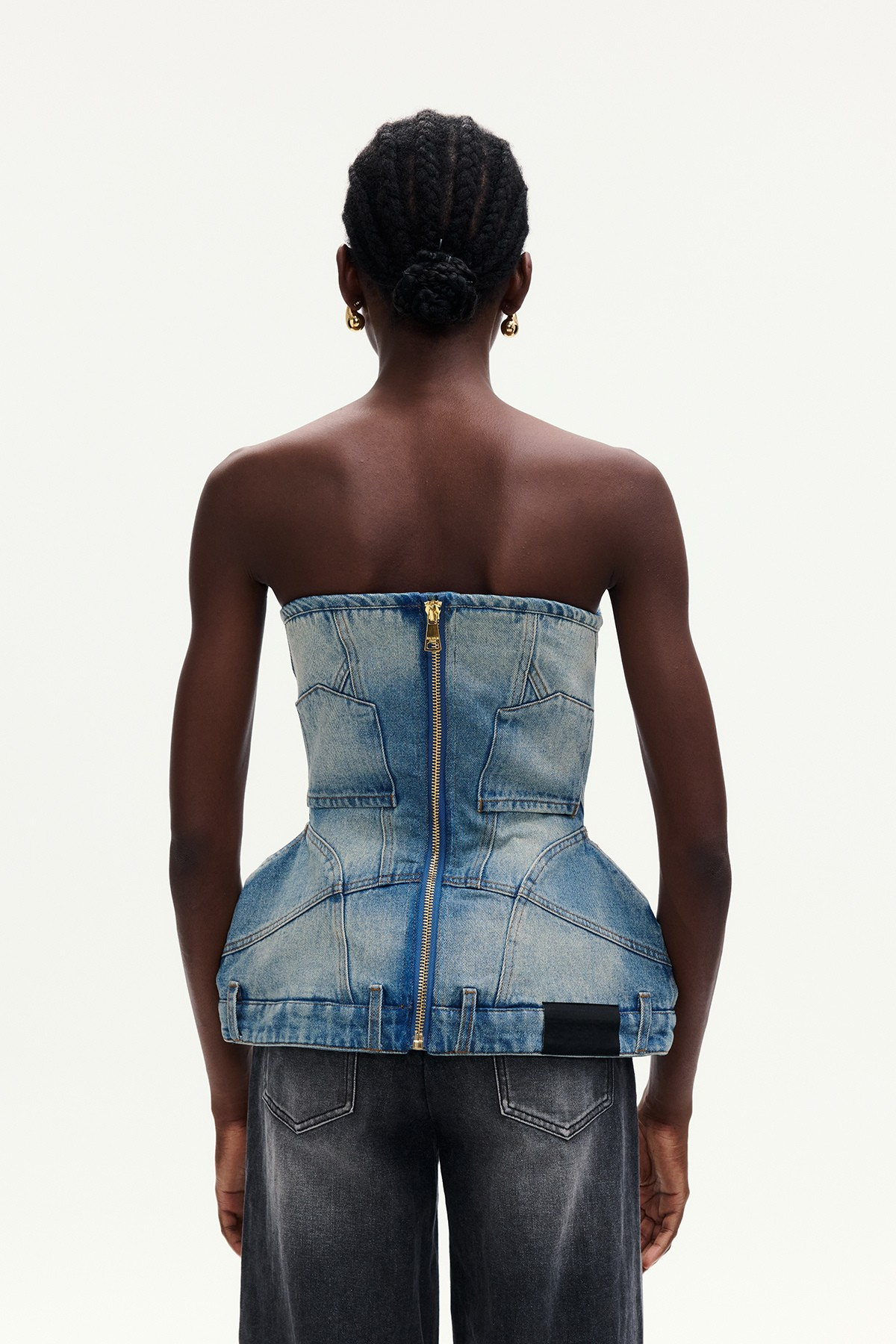 The Denim Strapless Top offers a modern twist on classic denim with its expertly crafted deconstructed design. This strapless piece highlights clean lines and tailored structure, providing a sleek silhouette that enhances versatility for both casual and elevated looks. Made from high-quality denim, it ensures durability and comfort while making a bold fashion statement. Ideal for those seeking a refined yet edgy wardrobe staple. The top comes in a vibrant blue color, perfect for adding an urban edge to your outfit. The color may vary slightly due to lighting in images, yet the unique style remains consistent in every wear. This top is available in sizes Small, Medium, and Large.