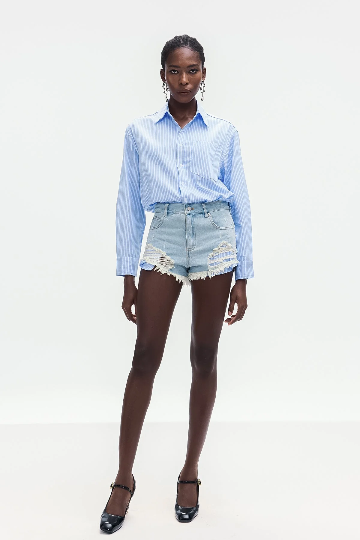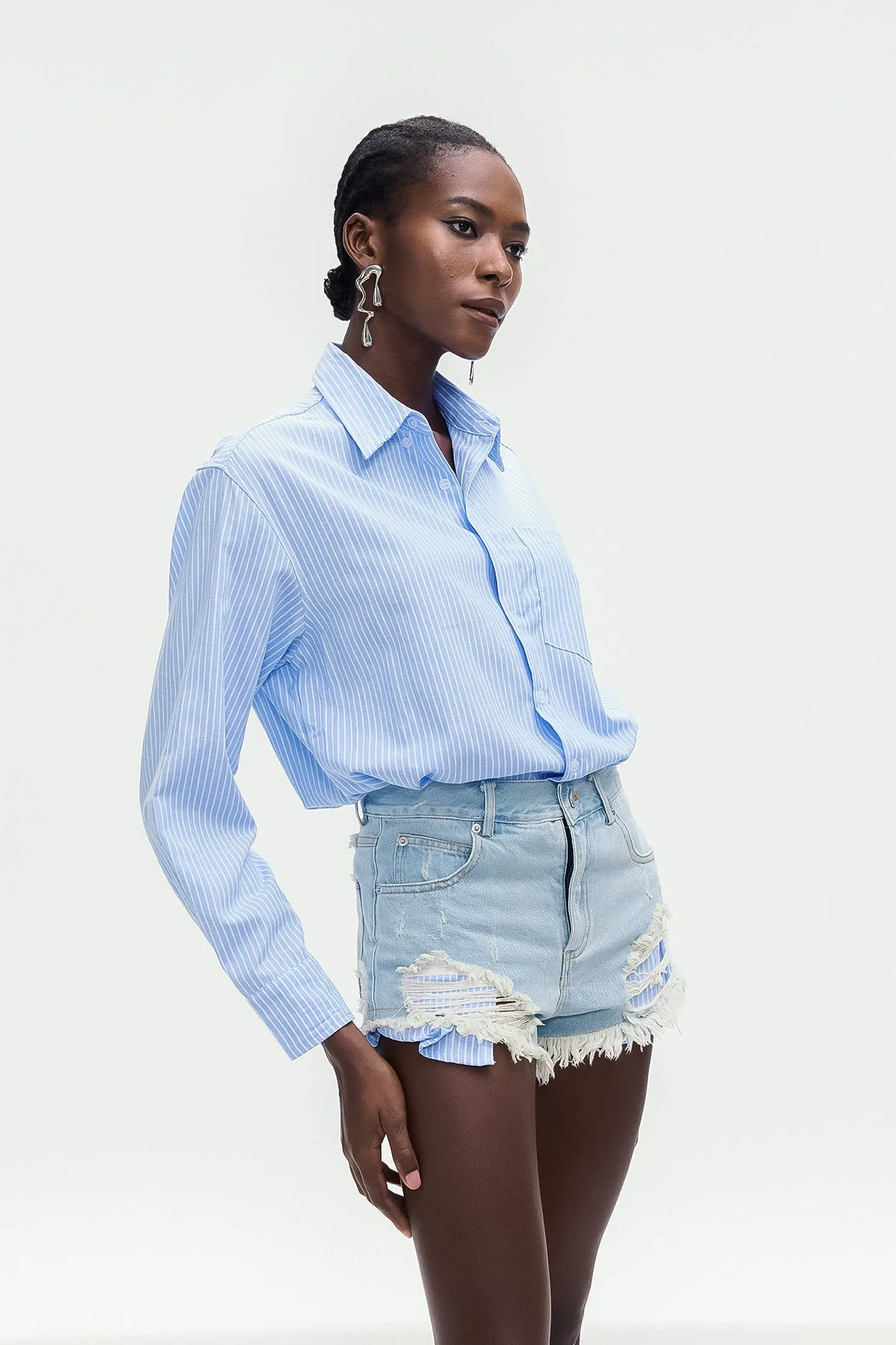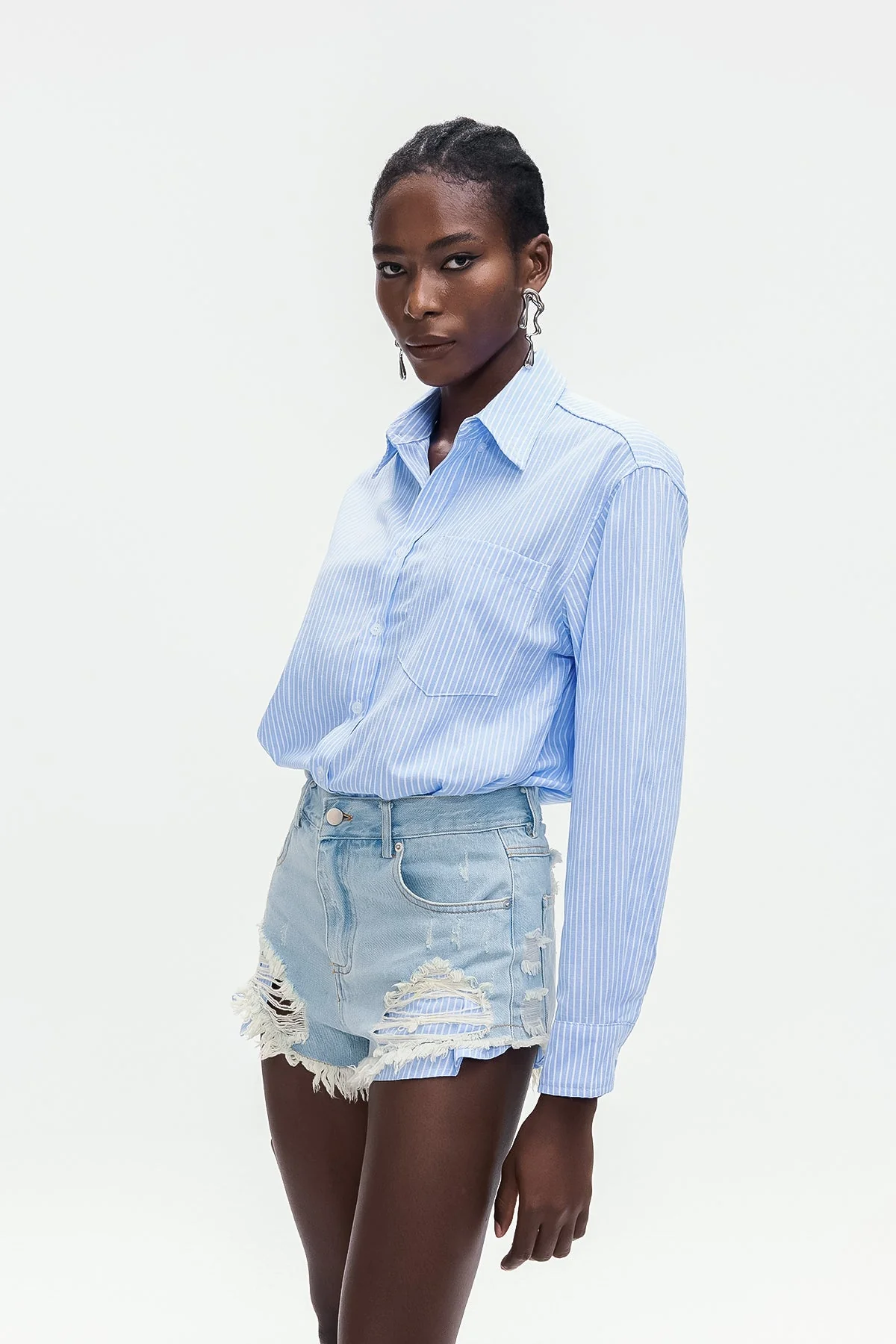 This stylish Denim Striped One-Piece Jumpsuit for Women offers a blend of classic denim durability and a refined striped shirt design. Perfect for casual or semi-formal occasions, the tailored fit enhances your silhouette while ensuring comfortable mobility. Whether for a casual day out or a rebel office look, this jumpsuit combines style and ease effortlessly. Discover ultimate comfort and style in this versatile jumpsuit for women. Please note, color may vary due to image lighting. Experience the versatility and comfort of this denim jumpsuit now!