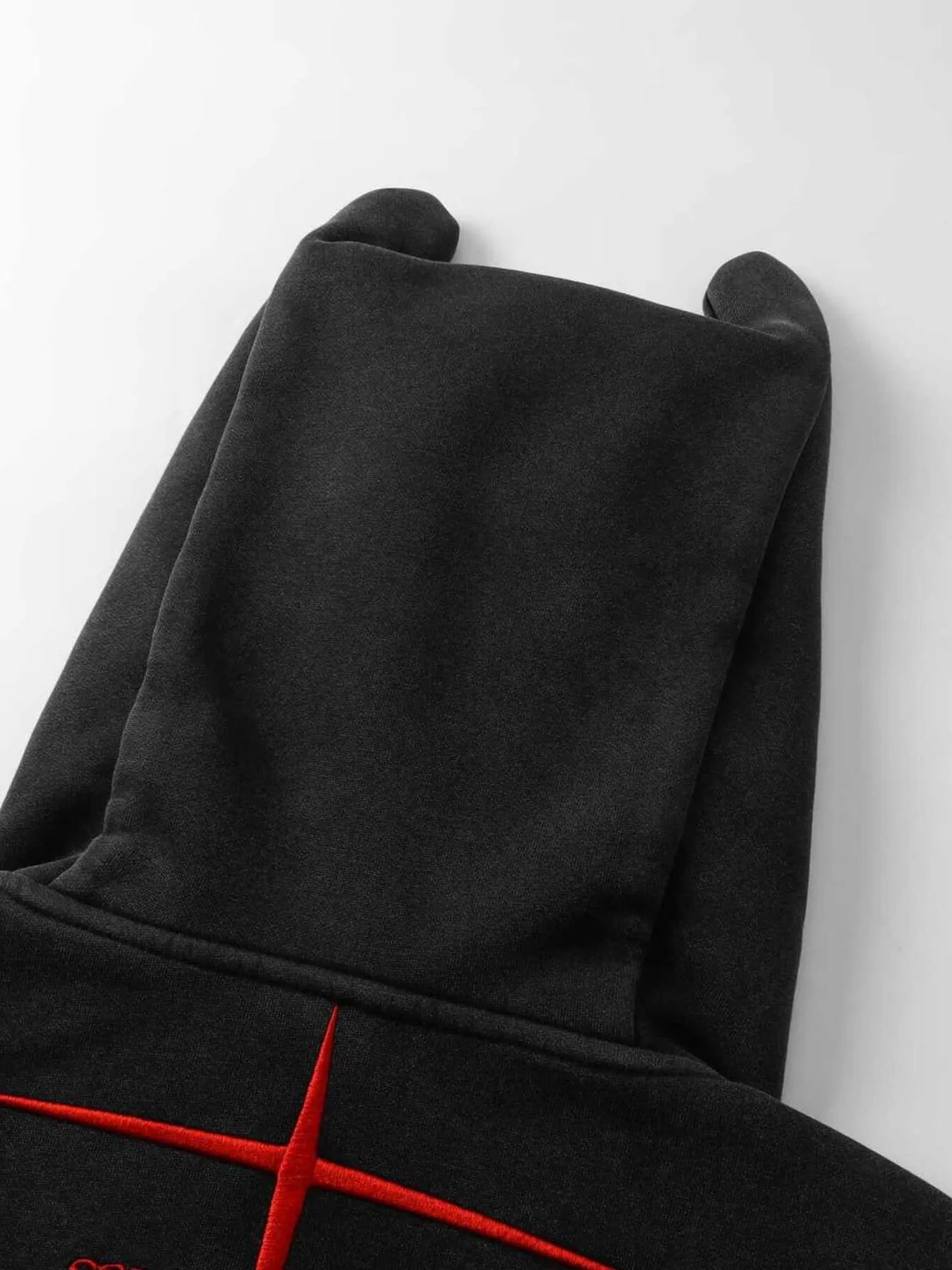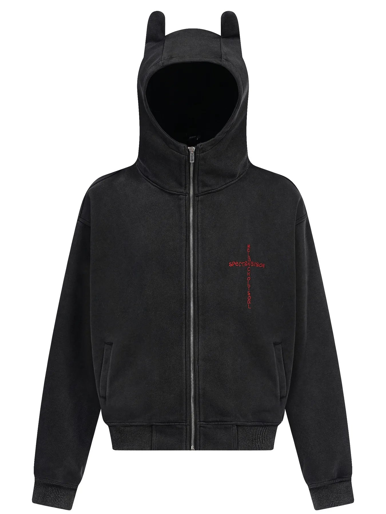 Experience the ultimate comfort and style with our Devil Horn Zip-Up Hoodie for men. This basic style hoodie features pockets, a zipper, and is slightly stretchy for a perfect fit. Made of a soft blend of 65% cotton and 35% polyester, it is easy to care for with machine wash cold and low tumble dry instructions. Available in multiple sizes to suit your needs. Elevate your wardrobe with this trendy piece.