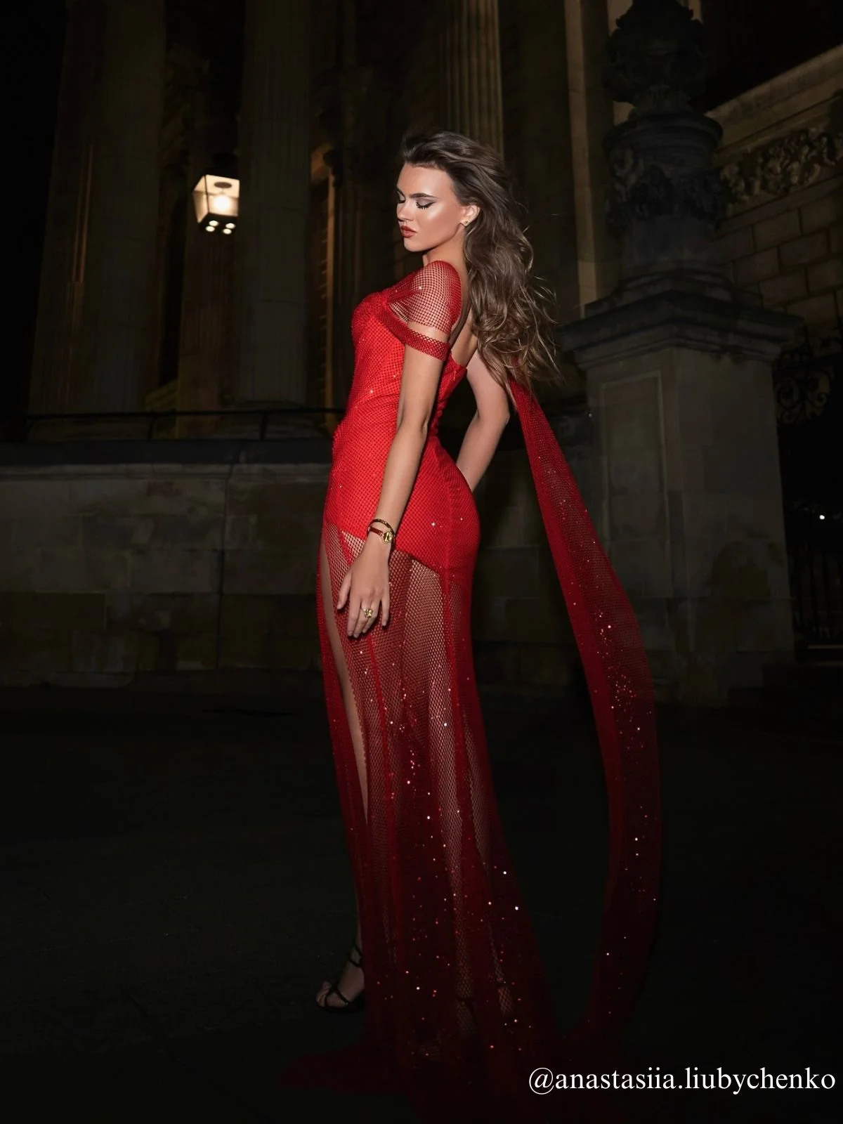 Elevate your style with the Diamond Mesh Split Sleeveless Maxi Dress. Crafted from premium 100% polyester, this dress features a stunning split diamond mesh pattern that exudes elegance and sophistication. Ideal for special occasions, its invisible zipper adds a seamless touch. Explore the perfect blend of style and comfort with this non-stretch beauty. Dry clean only. Light may affect color variation. Available in sizes S, M, and L.