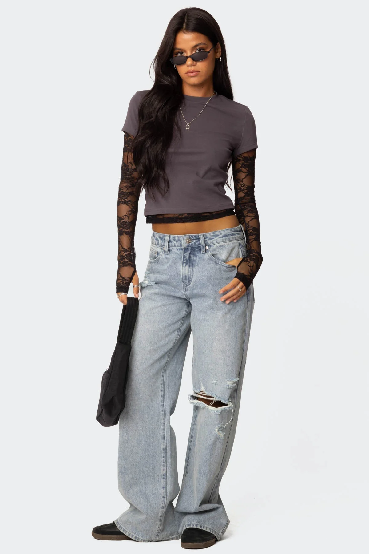 Upgrade your wardrobe with our stylish Distressed Blue Wide Leg Denim Pants made from 100% Cotton. These mid-rise pants feature a trendy wide-leg fit for ultimate comfort and fashion-forward style. Easy to care for, machine washable in cold water. Elevate your look effortlessly with these versatile pants. Available in sizes XS, S, M, L, and XL.