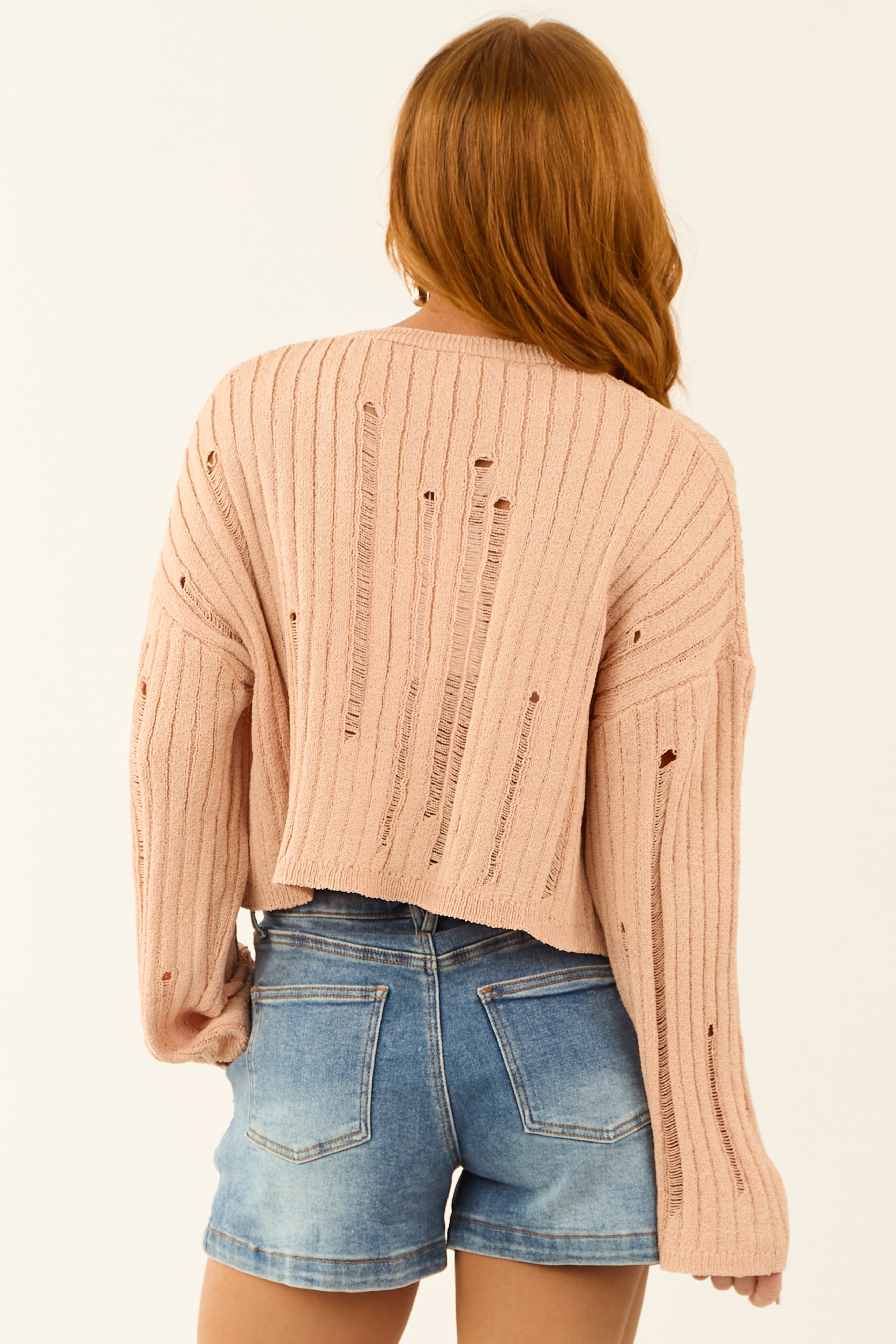 Stay trendy with our Sunrise Button Down Distressed Cropped Cardigan in S, M, L sizes. Made of a stretchy knit blend, this stylish cardigan features drop shoulder design, long wide sleeves, and distressed details. Perfect for a casual yet fashionable look. Unlined. Material: 62% Acrylic, 38% Polyester. Hand wash cold, do not bleach, line dry. Model is wearing size Small. For a chic, everyday cardigan that stands out, our Sunrise Cropped Cardigan delivers the perfect blend of comfort and style. Step up your wardrobe with this versatile piece!