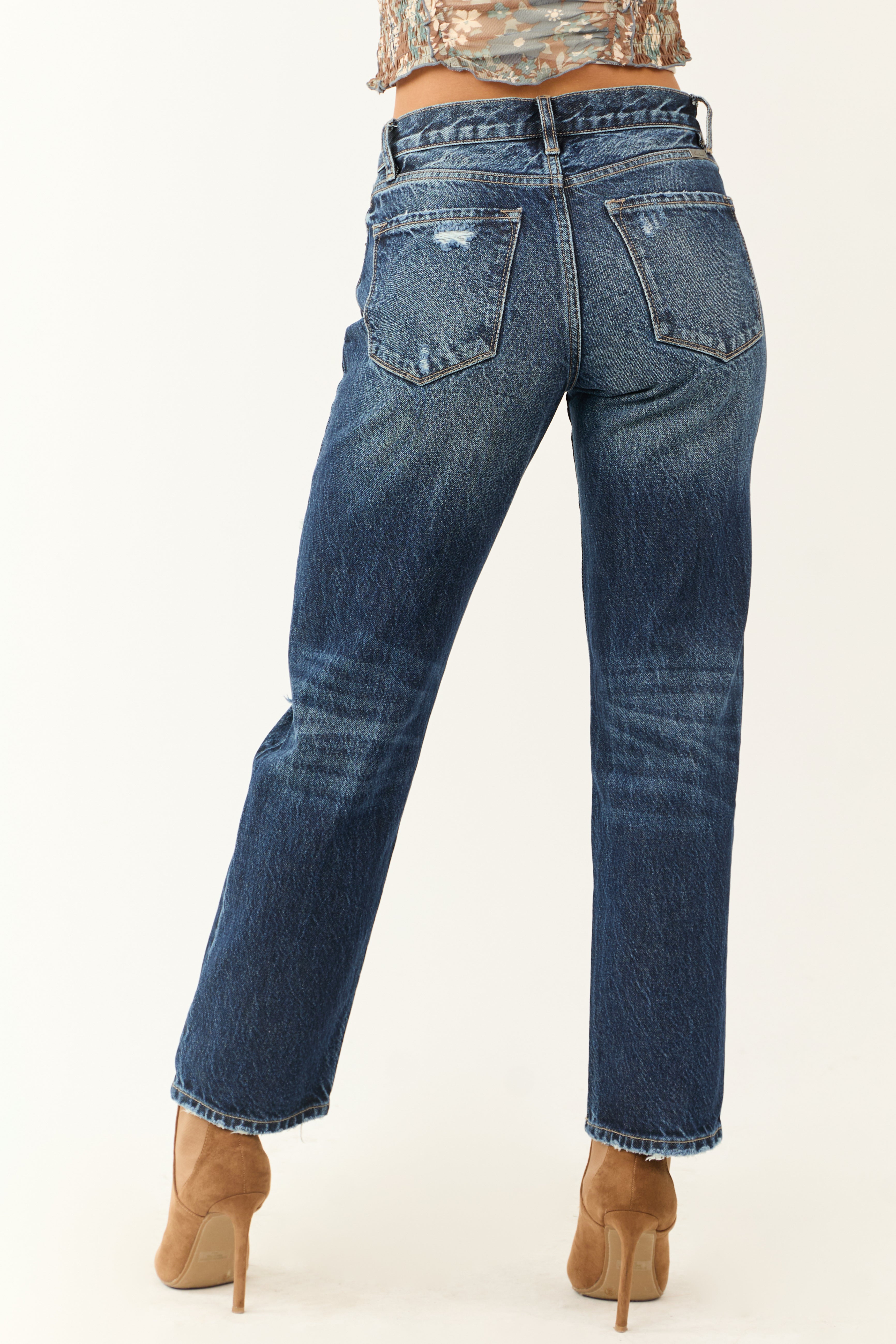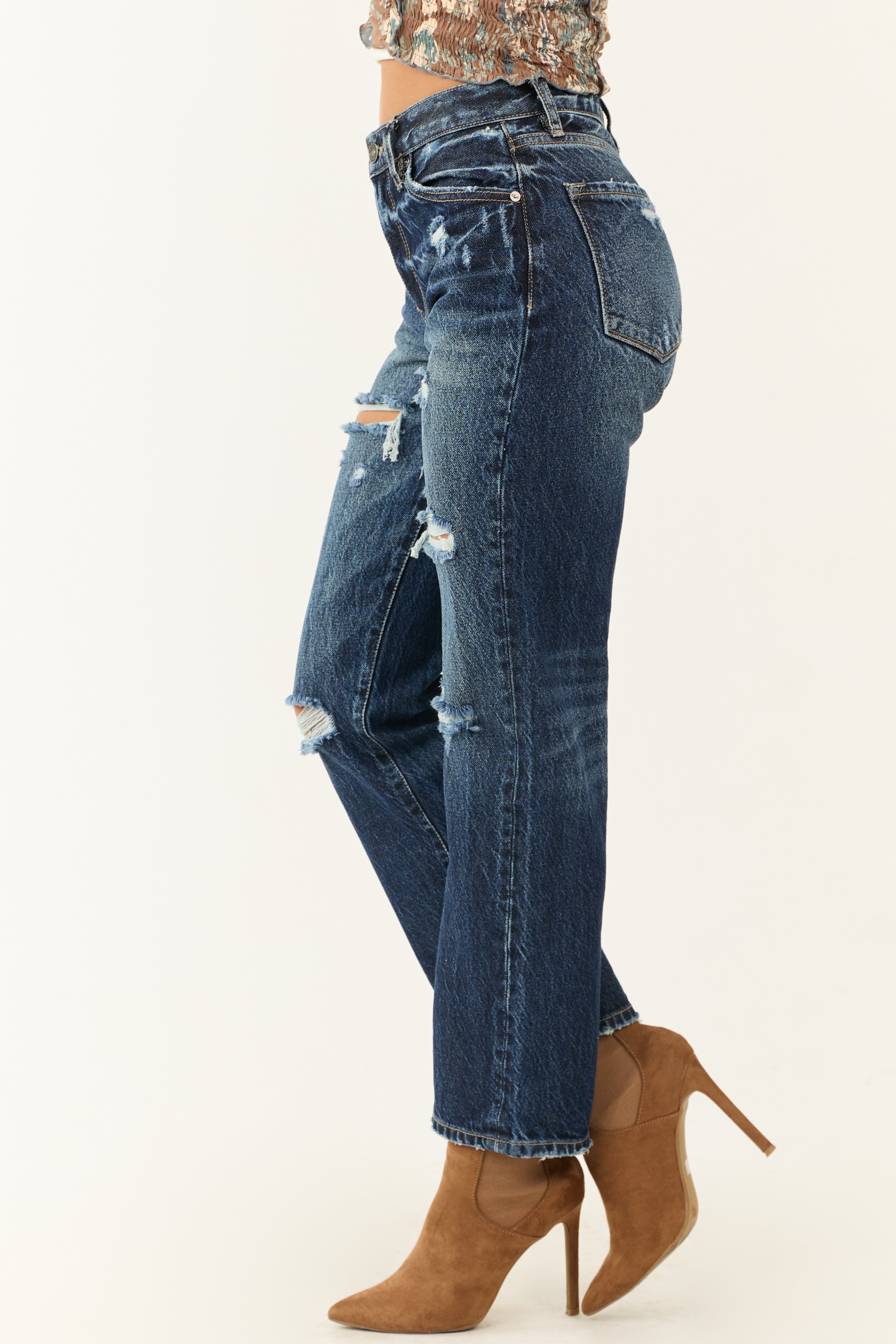 Add a touch of edge to your wardrobe with these Distressed Dark Wash High Rise Ankle Jeans . Expertly crafted from 100% Cotton, these non-stretchy denim jeans feature a high rise fit, a front rise of 10.5 inches, a back rise of 14 inches, and a comfortable inseam of 29 inches. The 5 pockets, zipper fly, and belt loops add functionality to style. Dont forget to wash and dry with like colors for lasting beauty. Sizes available: 0/23, 1/24, 3/25, 5/26, 7/27, 9/28, 11/29, 13/30, 15/31.
