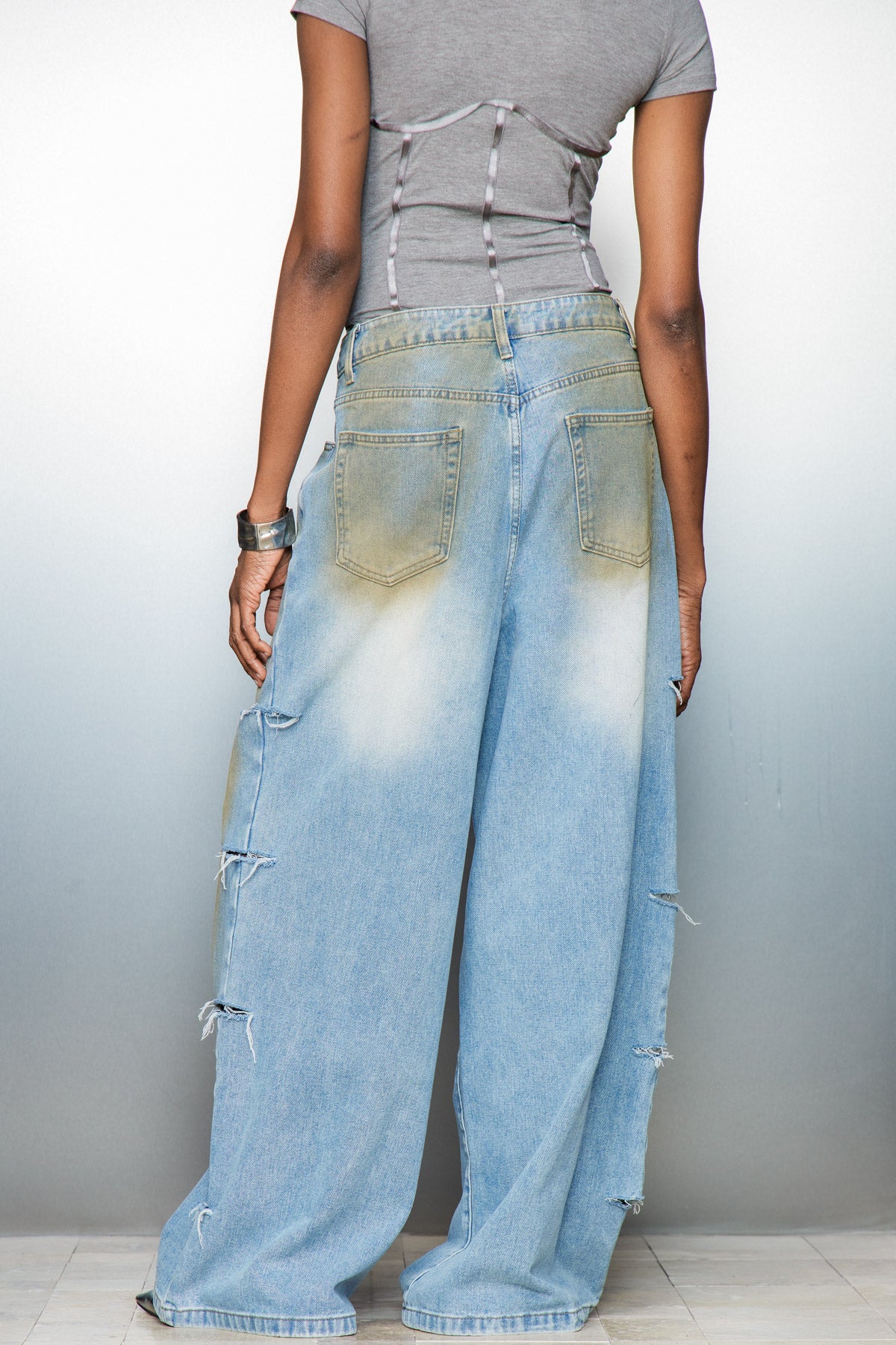 Discover the unique blend of contemporary style and comfort with our Distressed Hayley Wide Leg Jeans. Crafted from durable denim, these jeans are designed for longevity. The wide leg silhouette offers mobility and a fashion-forward statement, perfect for trendsetters. Embrace the edgy and lived-in look with deliberate distressed details, making these jeans a must-have addition to your wardrobe. Stretch Factor: Non-Stretch Fabric Care: Gentle machine wash recommended. Please note, color may vary slightly due to lighting conditions in images.