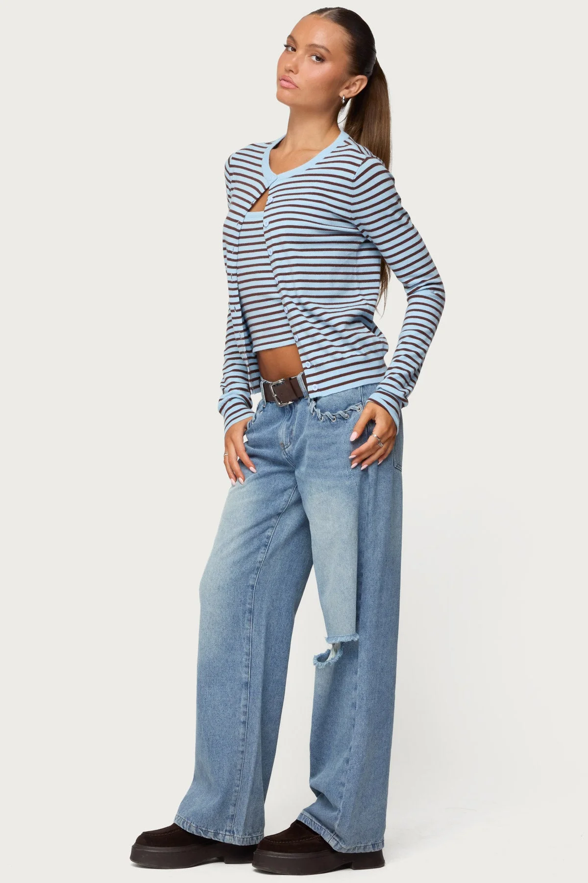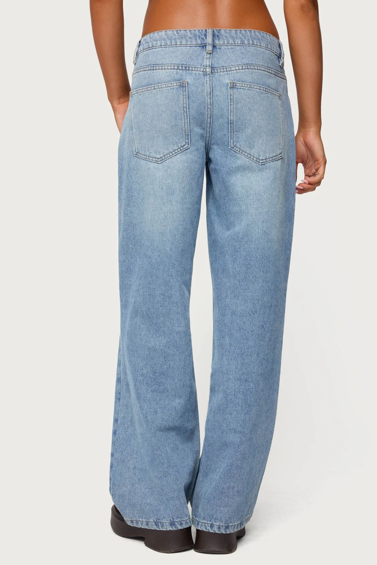 Upgrade your wardrobe with our trendy Distressed Low Rise Blue Denim Jeans for women. These jeans feature a stylish low rise waist and a straight leg fit. The distressed detail and lace-up detailing add a fashionable touch. Made from 100% Cotton denim fabric, these jeans ensure both style and comfort. Available in sizes XS to XL. Model wears size S with an inseam of 31.89 inches and a height of 58. Care Instructions: Machine wash at a maximum of 30ºC, do not bleach, tumble dry low, iron at a maximum of 110ºC, do not dry clean.
