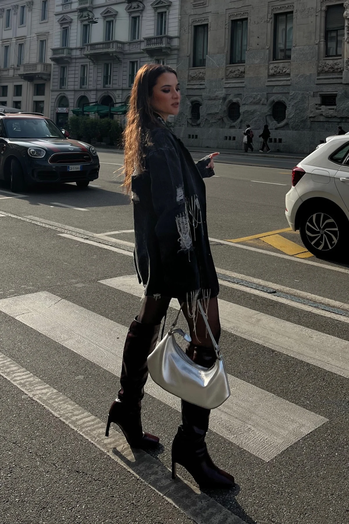 Elevate your style with our Distressed Rhinestone Embellished Denim Jacket in Black. This jacket combines edgy distressed detailing with sparkling rhinestone accents for a unique and stylish look. Crafted from high-quality denim (50% Polyester, 60% Cotton), this jacket offers both durability and comfort. The chain hanging effect adds a random touch of flair. Add this must-have piece to your wardrobe today!