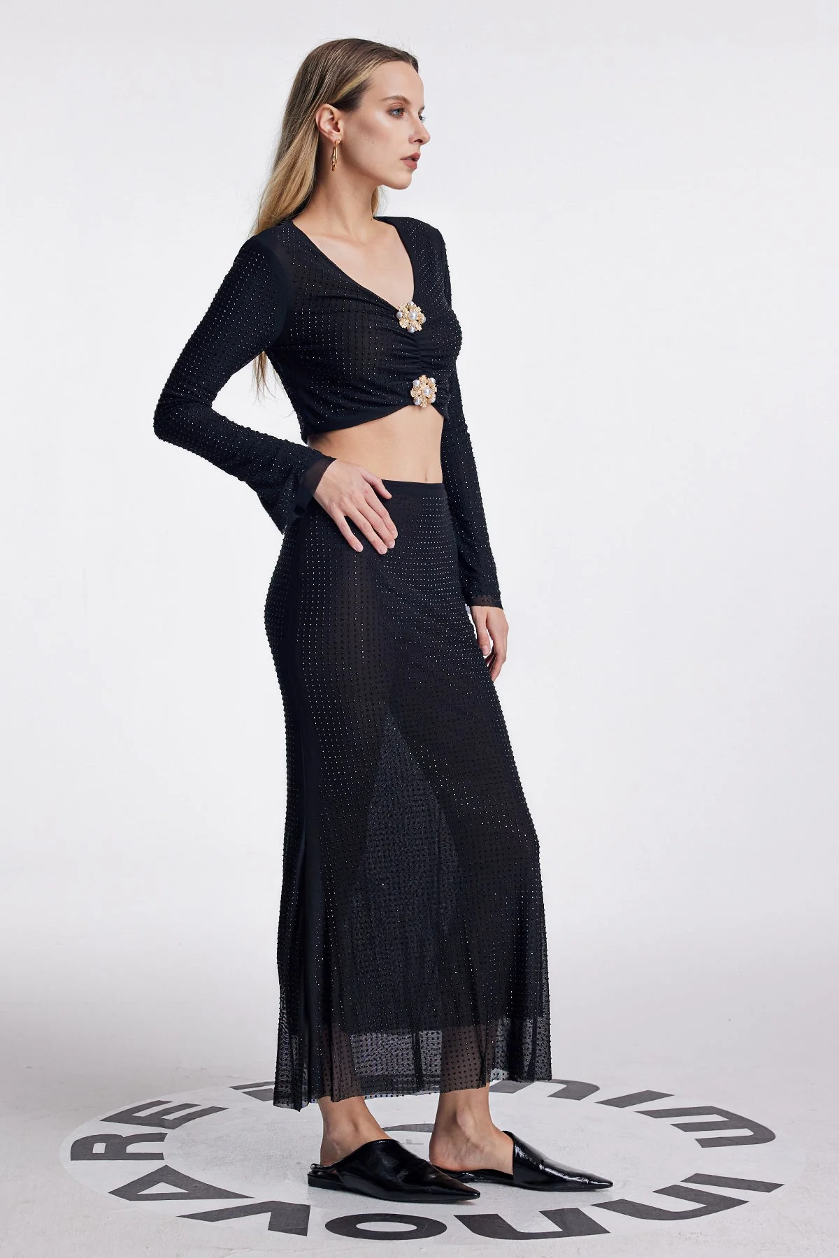 Elevate your wardrobe with the Dot Flower Ruffle Skirt Set. This stylish set features a charming dot flower pattern and ruffle detailing, adding a feminine touch to your look. Crafted from a blend of quality fabrics for comfort and durability, this set is versatile for any occasion. Enhance your style with this chic black ensemble. Material: 50% Polyester, 50% Cotton. Enjoy slight stretch for added flexibility. Care: Gentle machine wash. Please note, color may vary due to lighting in images.