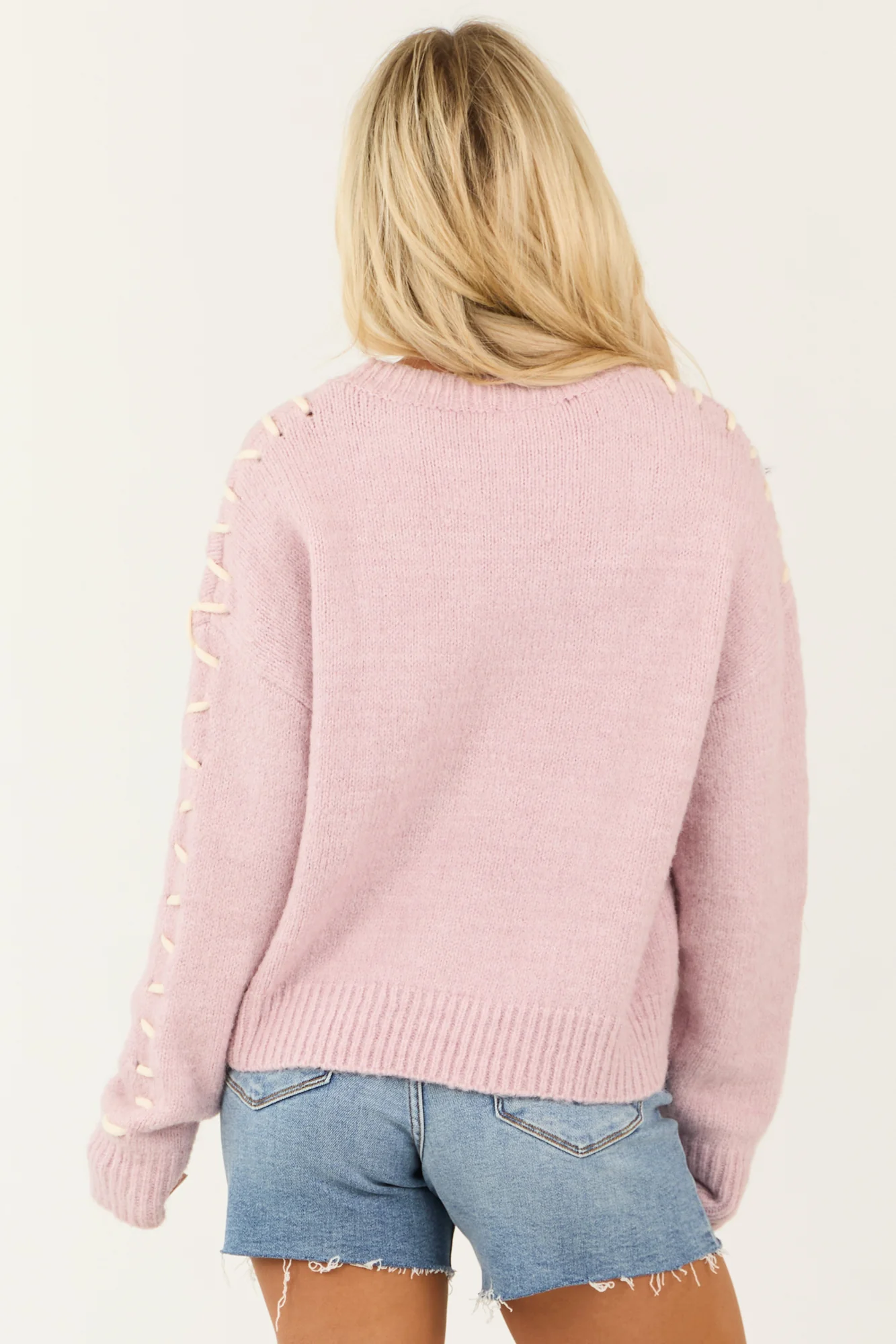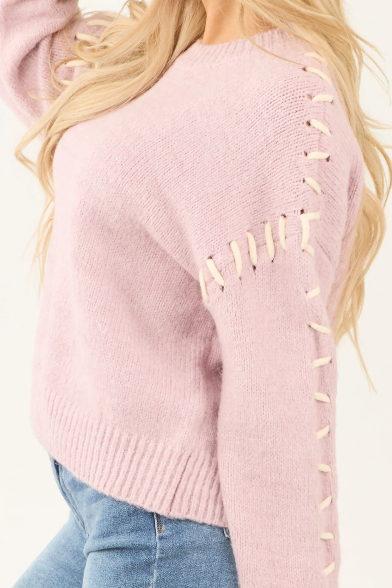 Stay cozy and stylish in this Dusty Pink Rib Knit Sweater with Cream Yarn Stitch Detail. This trendy sweater features a bozy wide fit, stretchy rib knit fabric, drop shoulder, and ribbed banded trim. The yarn stitch detail adds a unique touch. Crafted from 52% Acrylic, 28% Polyester, and 20% Nylon for a soft and comfortable feel. Perfect for chilly days or evenings out. Available in sizes XS, S, M, and L.