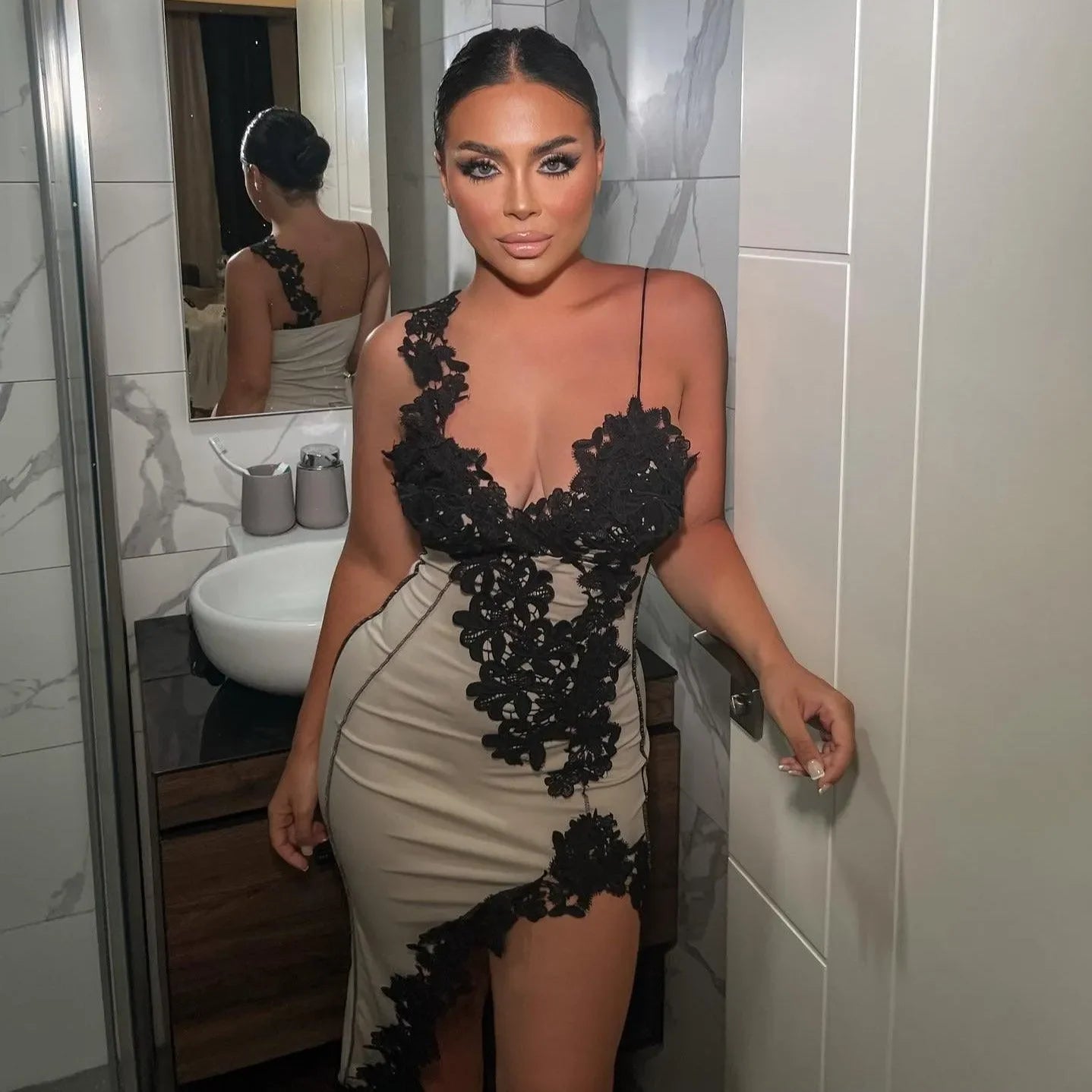 Elevate your wardrobe with this stunning weaved Lace Midi Dress, delivering both fashion and comfort. Revel in the exquisite lace features that exude sophistication. The well-fitted design accentuates your figure elegantly, while the side slit ensures freedom of movement. Perfect for evening gatherings or chic daytime events, this dress is a statement piece. For a classy outfit, pair with our Crystal Brooch Heels. Crafted from premium materials for durability and style, this lace midi dress is a versatile addition to your closet. Get style ideas on our Instagram @mermaid_way and upgrade your fashion game effortlessly. Enjoy a complimentary size exchange if needed for a perfect fit.