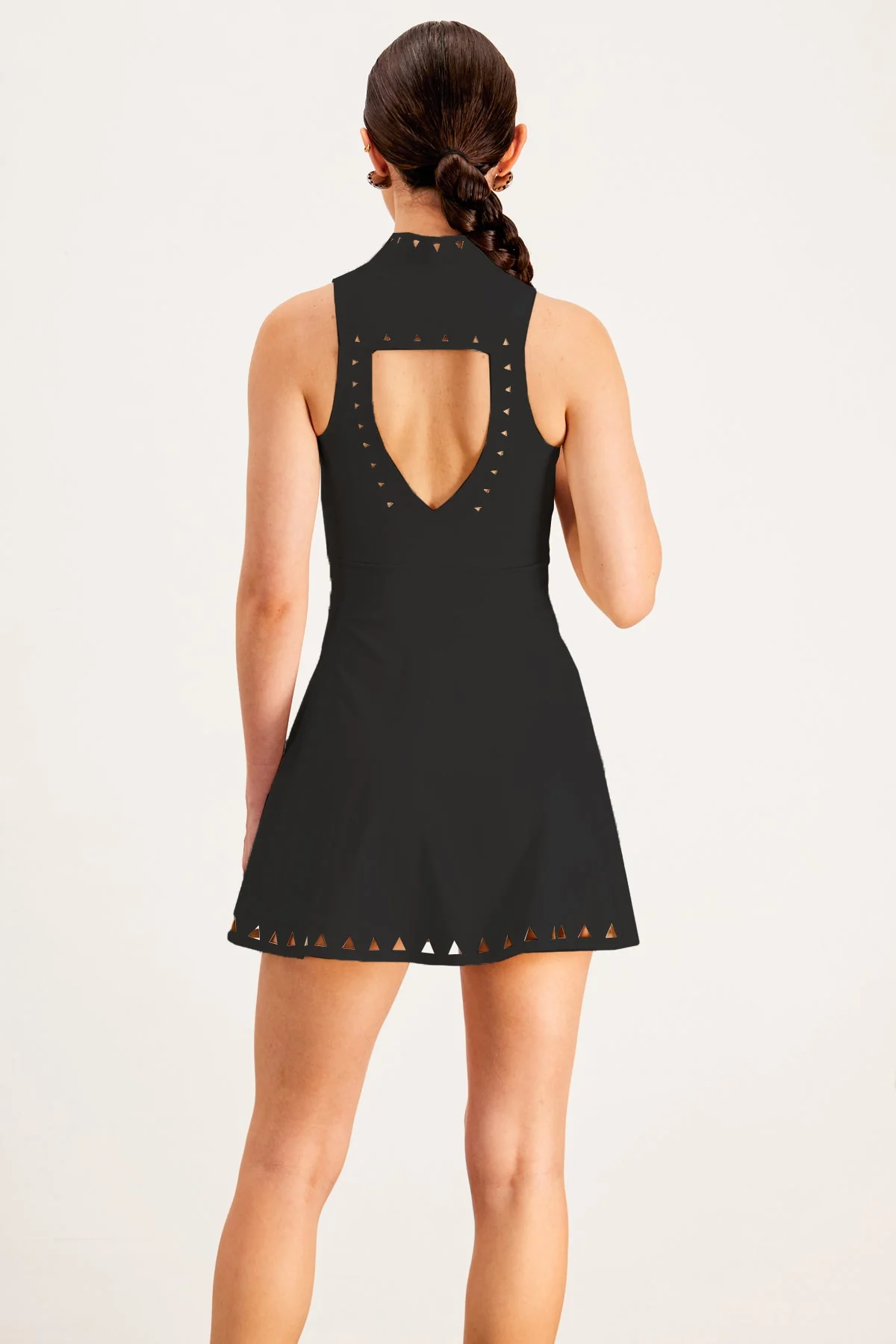 Elevate your style with the elegant Black Cutout Sleeveless Mini Dress. Crafted from high-quality 50% Polyester and 50% Cotton blend, this stylish dress features trendy cutouts and a sleek sleeveless design, suitable for various occasions. Enjoy both comfort and sophistication in one garment. The slight stretch ensures a flattering fit. Add this chic essential to your wardrobe and make a fashion statement effortlessly. Color may vary in different lighting conditions. Care Instructions: Gentle machine wash.