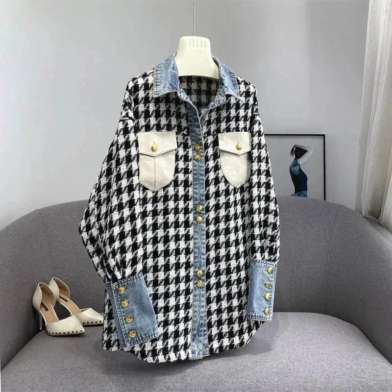 Discover the exquisite appeal of our Limited Edition Black Plaid Denim Jacket for women. This one-of-a-kind showstopper is crafted from a high-quality blend of Premium Denim and Polyester, offering both style and durability. Elevate your wardrobe with the elegant charm of this versatile jacket that effortlessly complements any look. Embrace sophistication and comfort with sizes ranging to 4XL, ensuring a perfect fit for every discerning fashion enthusiast. Complete your outfit with a timeless piece designed to turn heads and leave a lasting impression. Stay fashionable and cozy in all seasons with this chic Black Plaid Denim Jacket!
