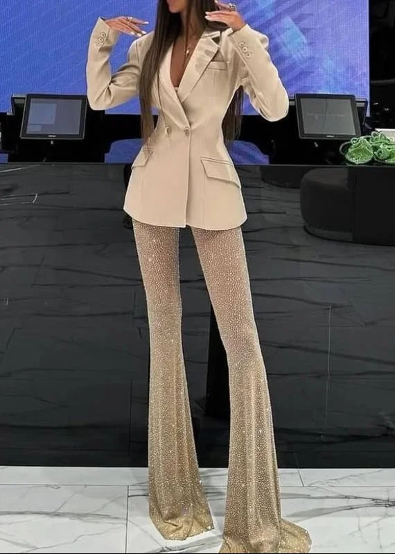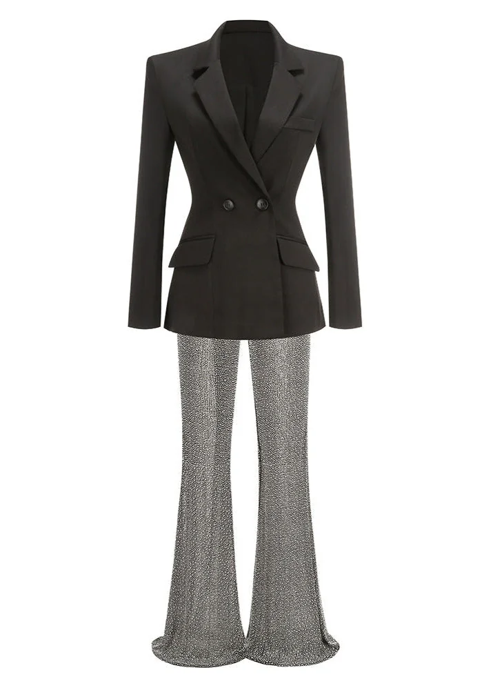 Indulge in luxury with our exquisitely designed Black Rhinestone V-Neck Long Sleeve Suit for women. This sophisticated ensemble features classic tailoring and opulent embellishments, ensuring you stand out with elegance and glamour at any event. Elevate your style effortlessly!