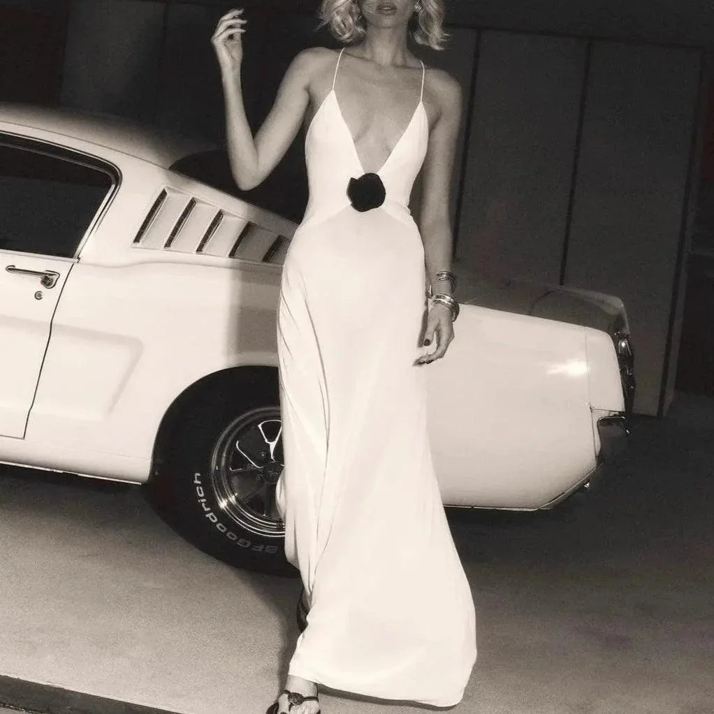 Make a stunning entrance with our Blossom Bliss Deep V-Neck Maxi Dress. This elegant backless gown features a plunging neckline and a flowing silhouette that enhances your natural grace. Ideal for weddings, galas, or special events, it combines style and comfort seamlessly. The V-Neck Maxi Gown boasts intricate embroidery on the bodice and a relaxed fit that drapes beautifully. This gown stands out with its timeless charm and modern design, ensuring you effortlessly shine and captivate at any event. Enjoy a memorable impression with every wear. For outfit inspirations and style tips, visit our Instagram @mermaid_way. Experience complimentary exchanges for size adjustments if needed.