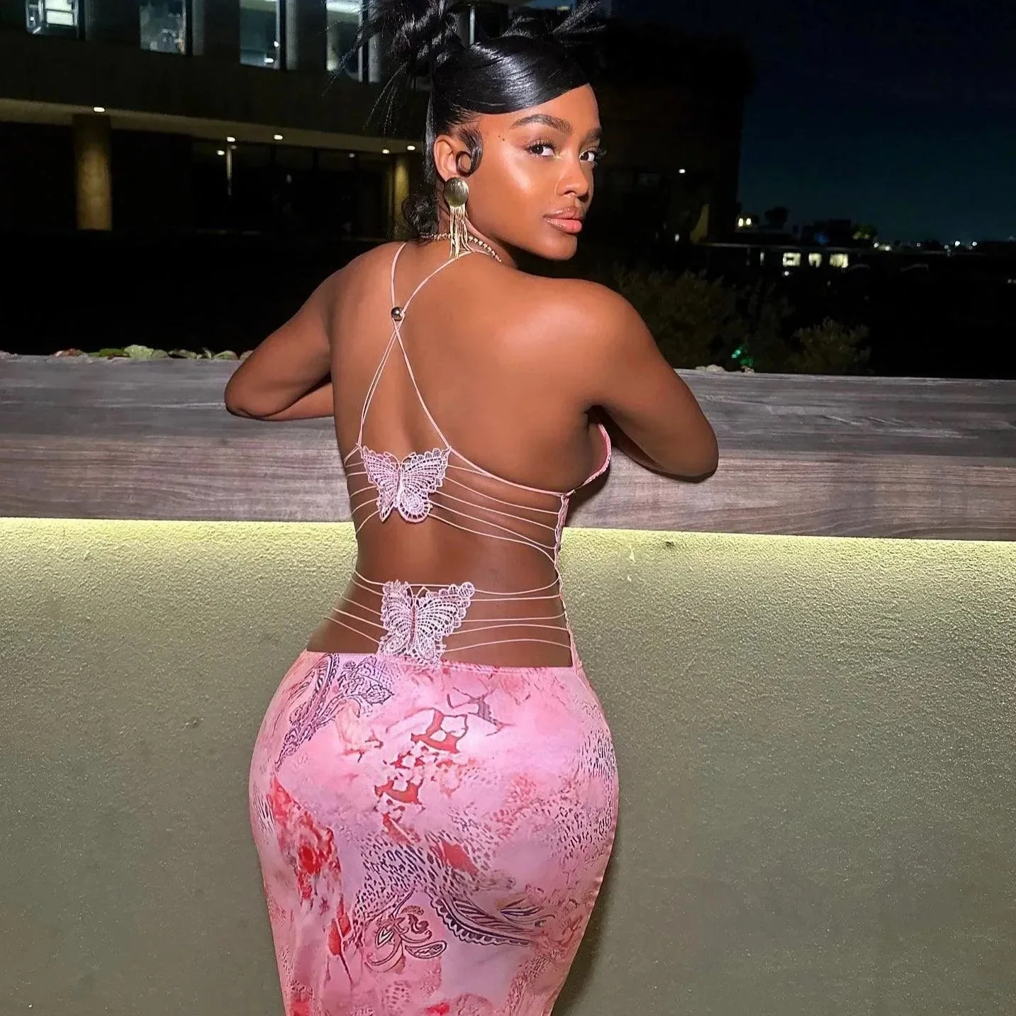 Elevate your style with our stunning Butterfly Print Open Back Maxi Dress! This eye-catching dress features a bold butterfly print, open back design, and a flowing silhouette that ensures you stand out at any event. Crafted from premium quality fabric for both comfort and style, this dress is perfect for special occasions or evening outings. The sophisticated print adds charm to your look, while the open back detail creates allure and elegance. Experience versatility and flair with this dress that guarantees a memorable occasion every time you wear it. Explore more fashion inspiration on Instagram @mermaid_way. MATERIAL: Made with 92% Polyester and 8% Elastane for a high stretch fit. Our favorite stretch mesh fabric offers a soft hand-feel. If the size isnt right, we provide a complimentary exchange for a different size.