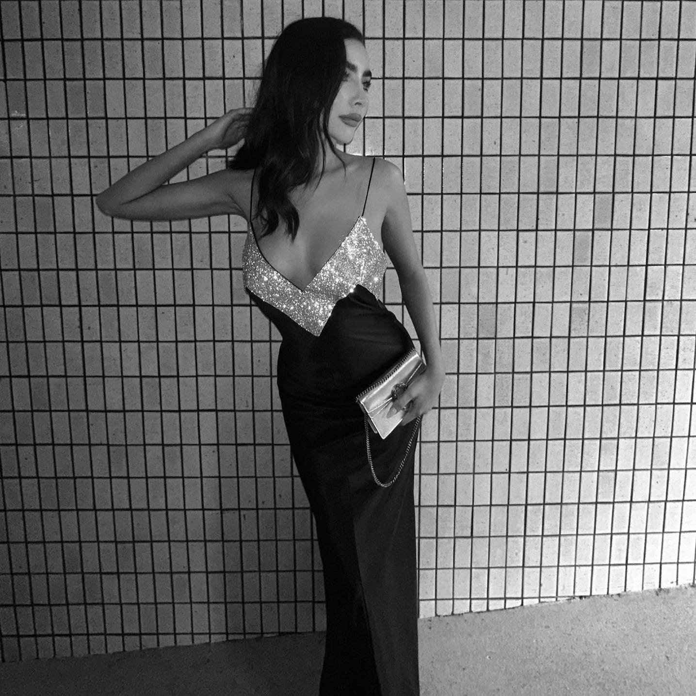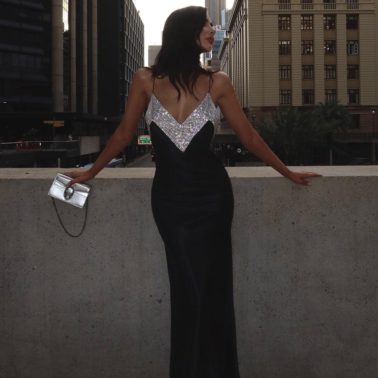 Make a lasting impression with our elegant Crystal Embellished Maxi Dress in Black. This stunning dress dazzles with sparkling crystals and a chic backless design. Crafted from soft, luxurious fabric, it combines comfort and style effortlessly. Perfect for upscale parties or special events, the unique backless design adds a touch of sophistication, making you the center of attention. Elevate your wardrobe with this exquisite piece and exude confidence and elegance at every occasion. Enjoy a complimentary exchange if the size doesnt fit as expected. Discover more fashion inspiration on Instagram @mermaid_way.