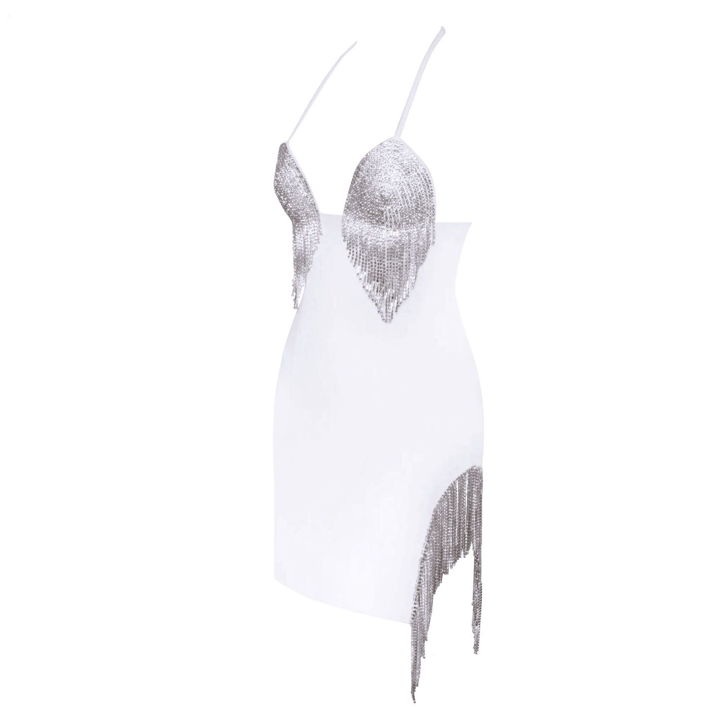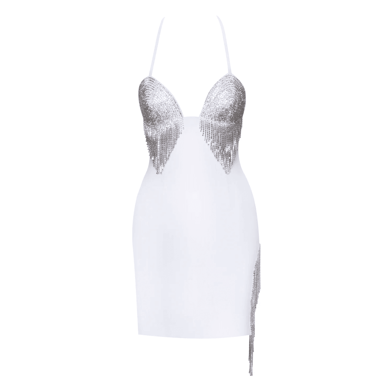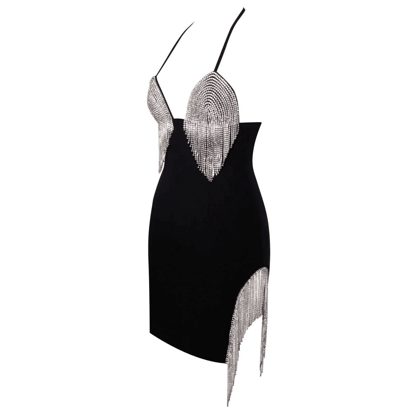 Make a lasting impression with this elegant crystal fringe mini dress, featuring exquisite crystal detailing and a chic fringe design that beautifully captures light. Elevate your style for special events with this glamorous piece, versatile for formal and semi-formal occasions. The intricate embellishments create a captivating effect, offering effortless styling options. Complete your polished look by pairing this dress with stylish heels. Experience exceptional fit and style. Complimentary size exchange available.