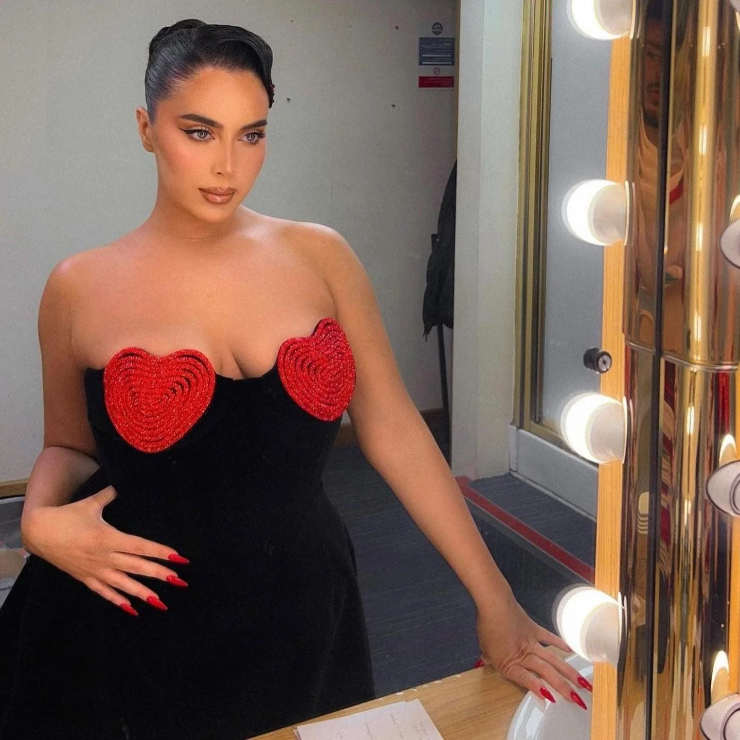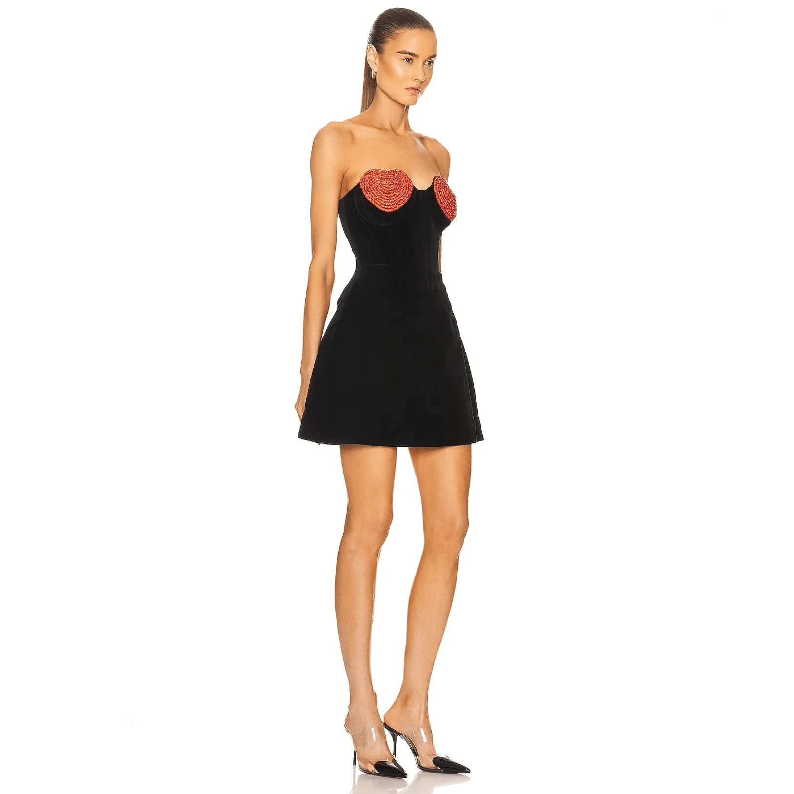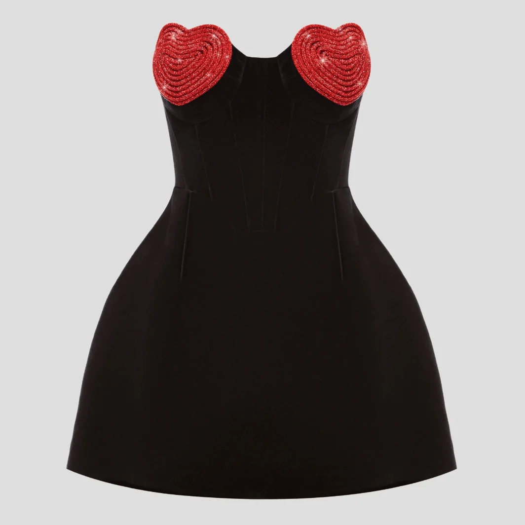 Elevate your wardrobe with this elegant black mini dress featuring charming diamond heart embellishments. This dress offers a flattering silhouette, high-quality comfort, and style, ideal for festive events. Transition seamlessly from day to night with this standout piece, pairing it with sleek satin heels for added glamour. Follow us on Instagram @mermaid_way for more style inspiration and outfit ideas. Materials: Polyester, Spandex, Velvet. Enjoy a complimentary exchange if the item doesn’t fit as expected.