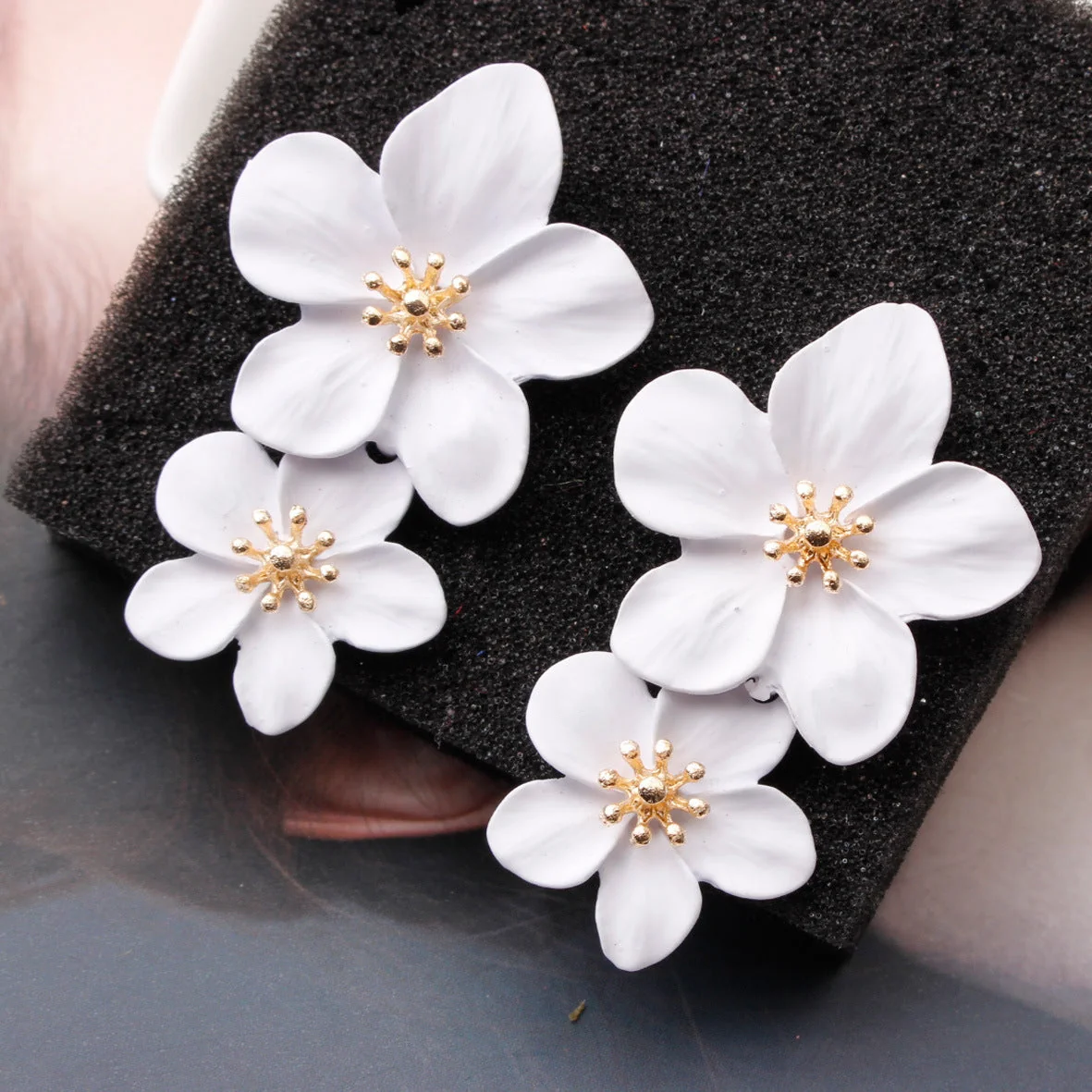 Indulge in the timeless elegance of our Sandra Double Flower Earrings. Crafted with exquisite attention to detail, these stunning earrings feature two delicate flowers in an array of vibrant colors to complement any outfit effortlessly. Whether you choose the fiery Red, romantic Rose Red, lush Green, playful Pink, luxurious Gold, sunny Yellow, tranquil Blue, or classic White, these earrings are sure to add a touch of sophistication to your ensemble. Made for those who appreciate fine craftsmanship and distinctive style, these earrings are perfect for any occasion, from casual outings to special events. Elevate your look and enhance your beauty with these charming floral accessories.