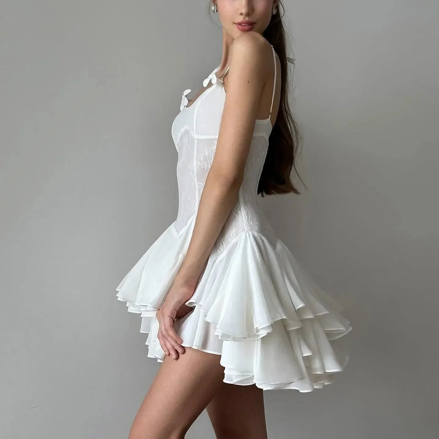 Step out in style with our Elegant Floral Embroidered V-Neck Mini Dress, perfect for any special occasion. This mini dress features intricate floral embroidery, a flattering V-neckline, and a chic crisscross back design, combining vibrant colors with delicate details. Made from high-quality fabric for comfort and sophistication. Feel confident and beautiful in this flowy style that accentuates your unique flair. Discover more outfit ideas on Instagram @mermaid_way for inspiration. FEATURES: Multi-layered and partially lined design with thin adjustable shoulder straps. Designed to be worn with undergarments in the same color. Mini flower detail on the straps adds a touch of elegance and movement. Enjoy a complimentary exchange for a different size if needed.