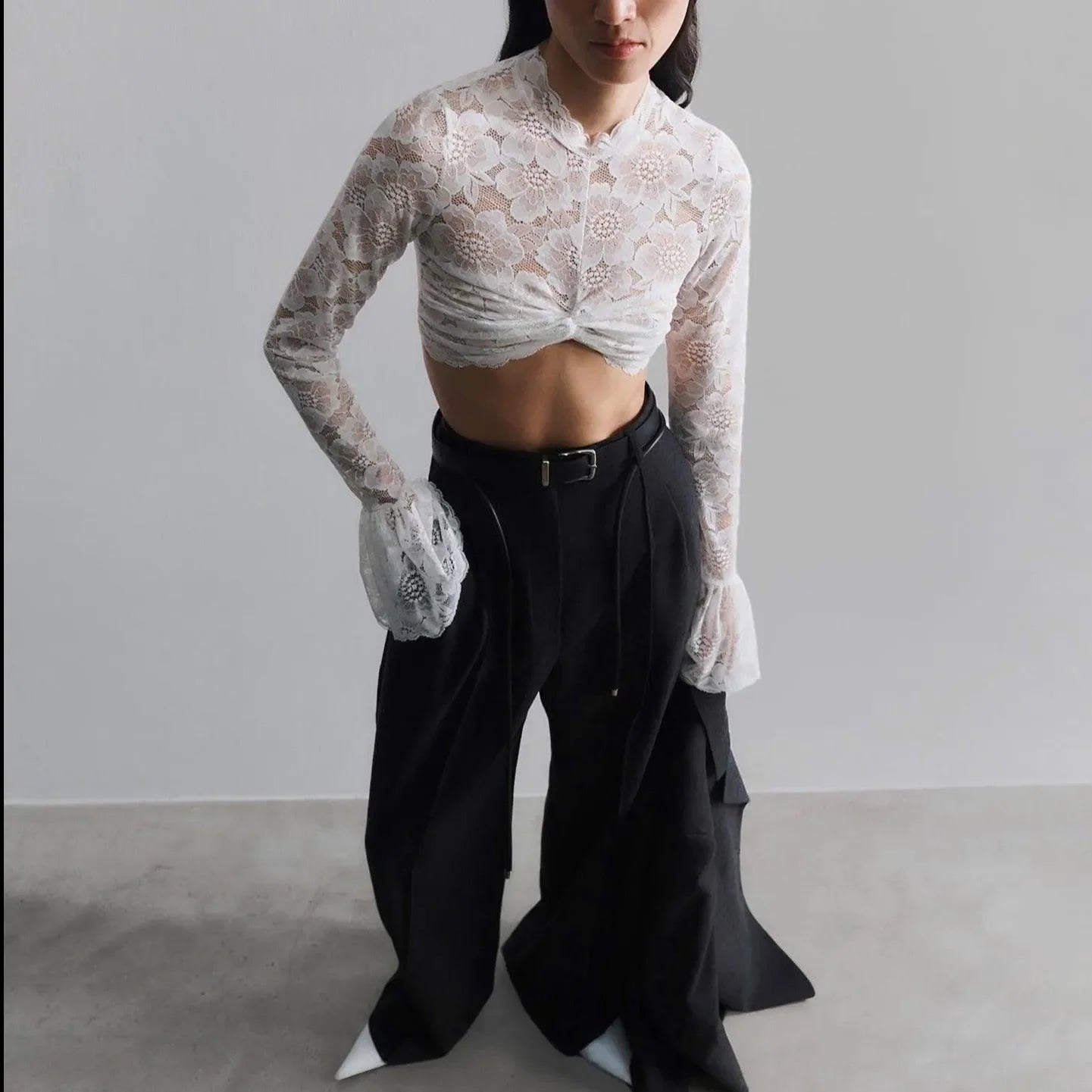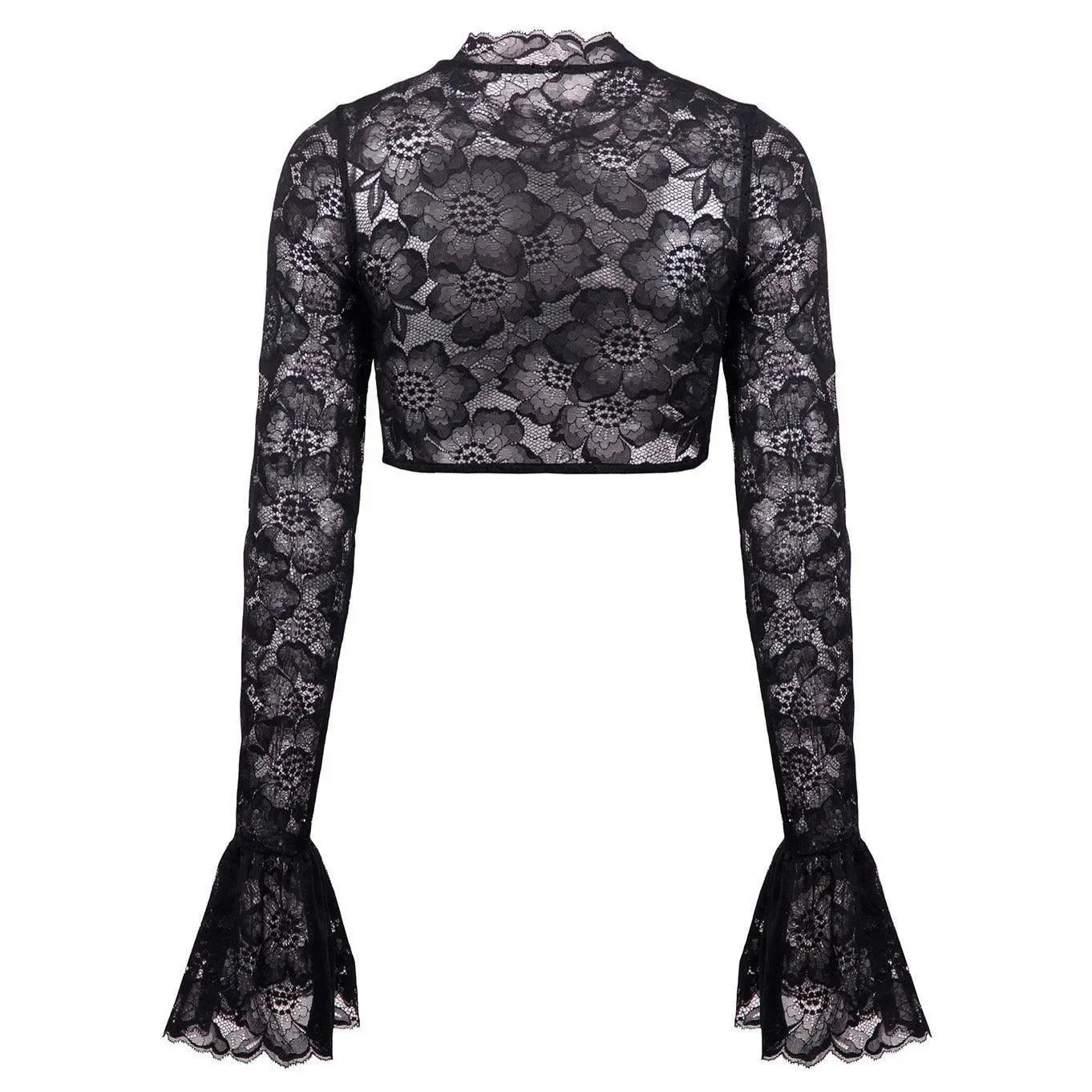 Elevate your wardrobe with our Elegant Floral Lace Sleeve Crop Top. This exquisite top showcases intricate floral lace details and stylish flare sleeves, adding a touch of sophistication to any ensemble. The delicate sheer lace imparts a feminine charm, while the graceful silhouette crafted by the flare sleeves exudes elegance. Perfect for various occasions, this crop top effortlessly blends style with comfort. Embrace versatile elegance today with our Floral Lace Sleeve Crop Top!