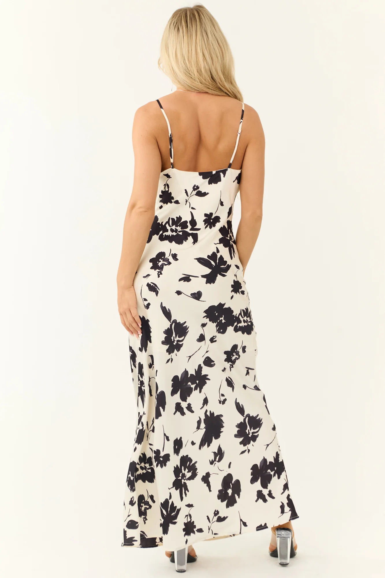 Indulge in the sophistication of our elegant maxi dress with a flattering V-neckline, adjustable straps, and lace trim details. Available in sizes S, M, and L. This dress features a loose blouson bodice, hidden side zipper, and a luxurious floral print design. Look effortlessly stylish in 100% Polyester with a lined body that ensures comfort and grace. Hand wash cold, line dry, and look picture-perfect always.