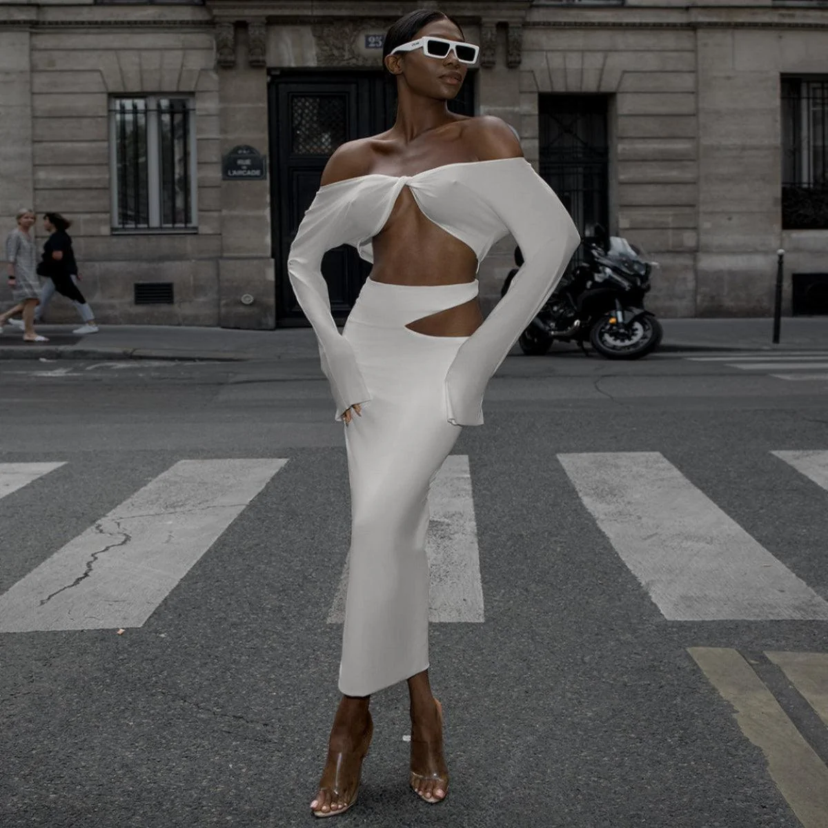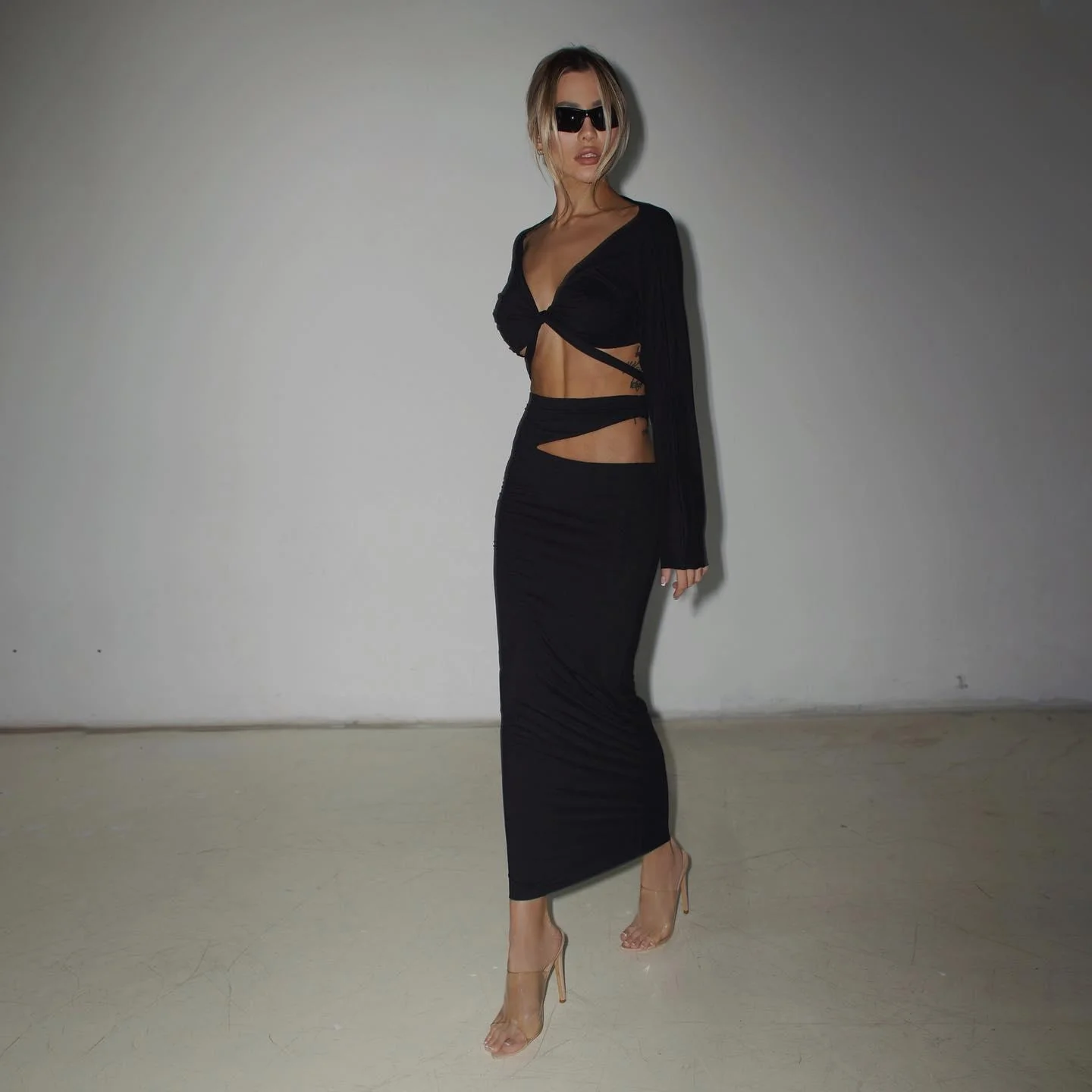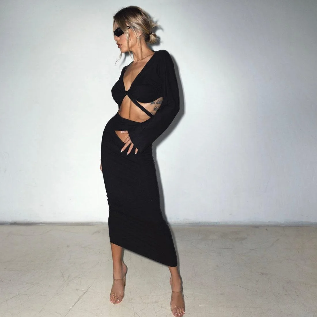 Illuminate your style with the Elegant Glow Matching Set, exuding a blend of chic design and modern sophistication. This two-piece ensemble includes a stylish crop top and a matching skirt with striking side cut-outs for a bold yet refined look. Expertly crafted from soft and breathable polyester fabric, ensuring all-day comfort. Transition effortlessly from day to night by pairing with heels for an elegant flair or sandals for a laid-back vibe. The figure-flattering silhouette makes it ideal for special occasions or evenings out, accentuating your curves beautifully. Explore endless styling possibilities on Instagram @mermaid_way. Embrace creativity in how you adorn this set for various occasions.