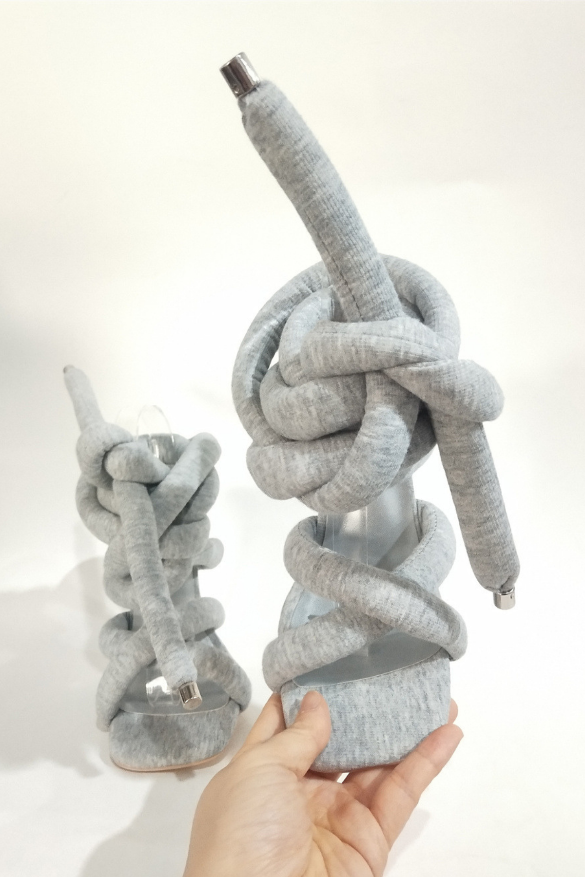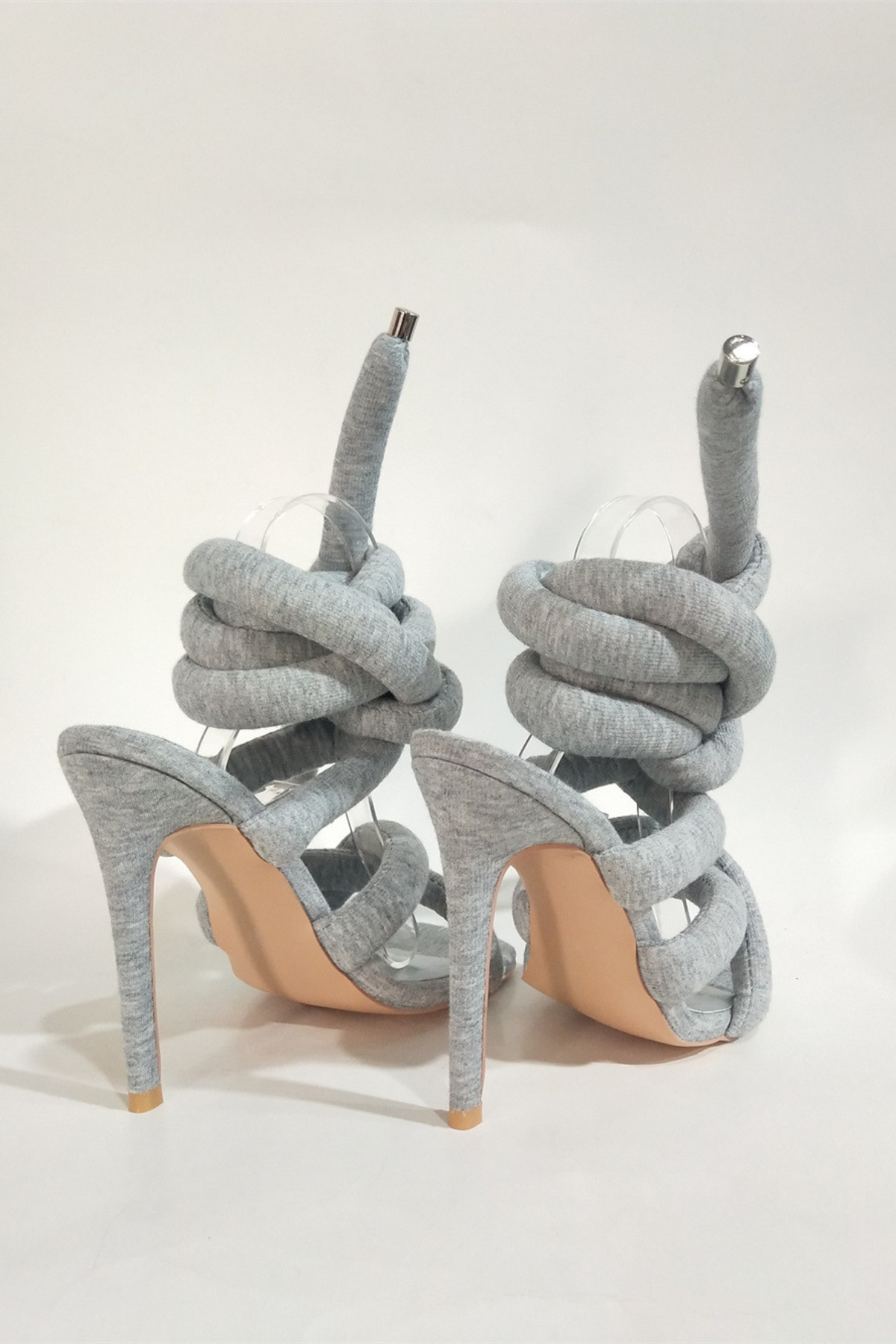 Indulge in sophistication with these elegant grey lace-up high heels . The must-have footwear features a stylish lace-up design and a 4.5-inch heel to elevate your outfit for any special occasion. Crafted from high-quality polyester, these heels exude confidence and style effortlessly.